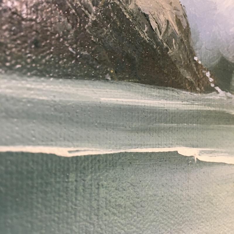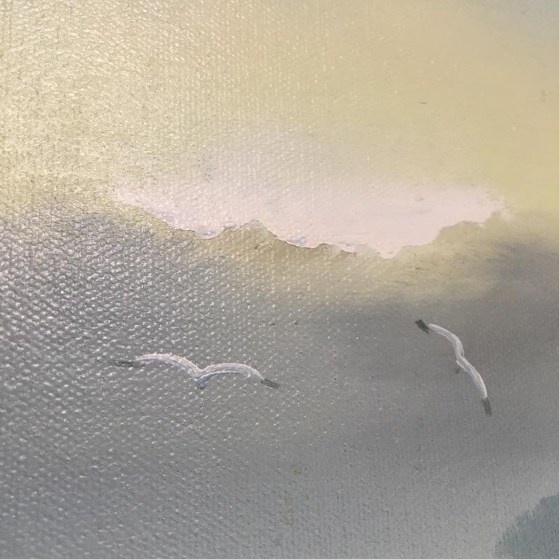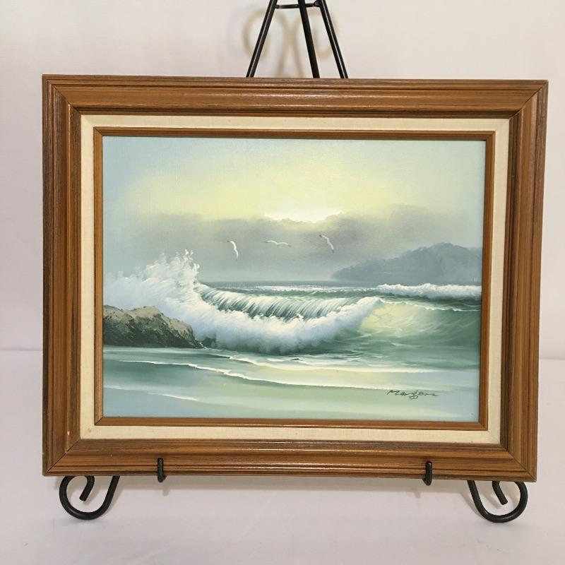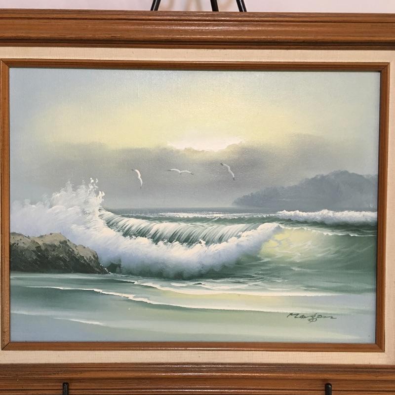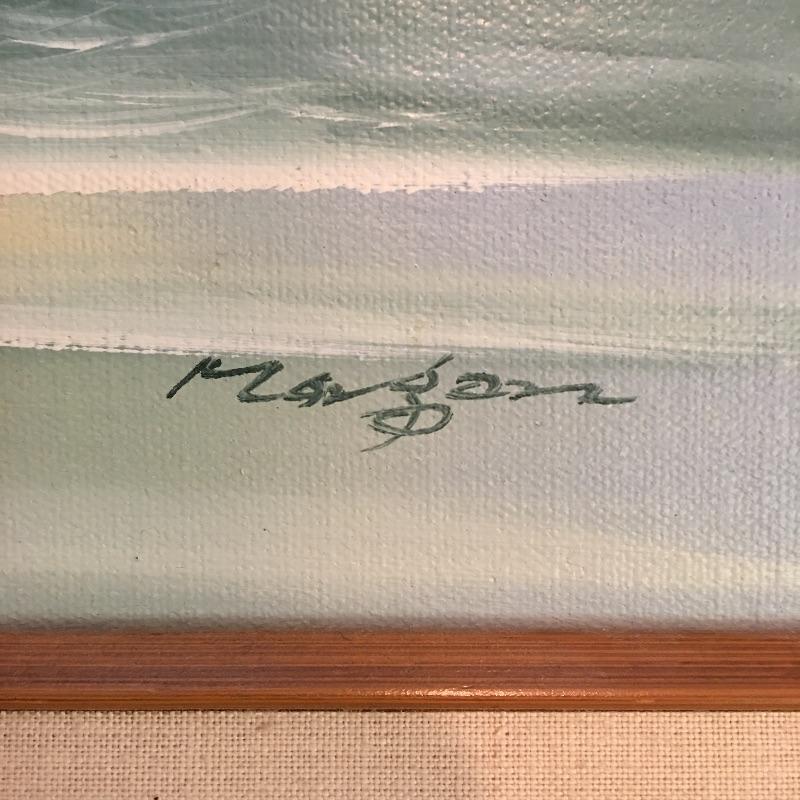 Framed seascape oil painting signed Morgan. This beautiful seascape painting that will help you unwind at the end of a long day. Frame measures 16.25” x 20.25”.