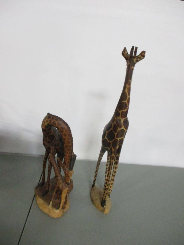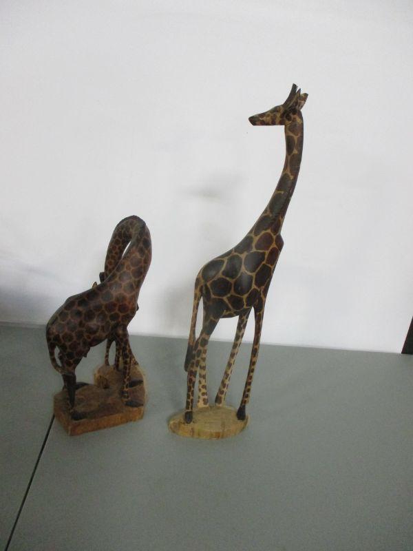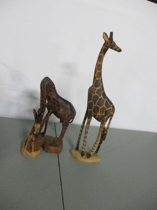 Lot 3 -Hand-Carved Wooden Giraffe Statues Decor