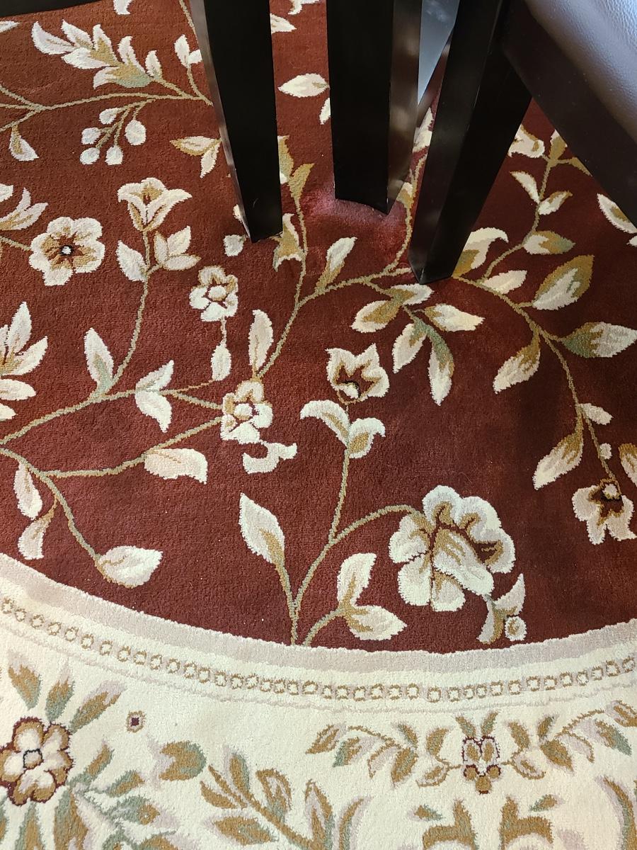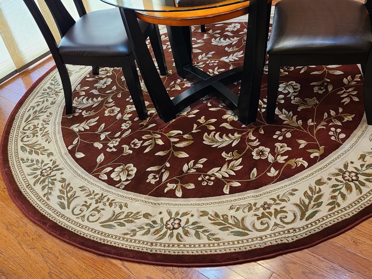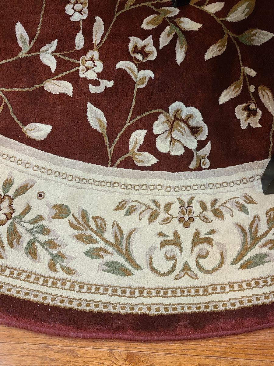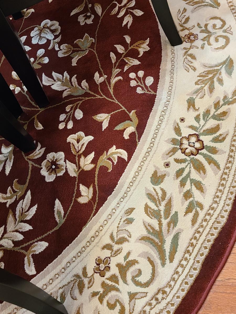 This lovely accent rug, is perfect for an entryway or under a dining table. Has red/maroons, beige and soft sage floral designs. Has been lightly used for home staging, so a light vacuum and close to new! The pictures show condition, measurements if taken, and what is included in the lot. Due to the large amount that we photograph and the time frame, we are not always able to take measurements. All items unless noted, are pre-owned and have been used. If you purchased furniture, you must bring help. We do not allow one person to carry large furniture out on their own. Bring help, tools and a truck for the safety of our client’s homes, and your personal safety. Any damages that result to the property including walls, and floors due to moving of the furniture will be charged to the buyer. Company policy. Thank you.