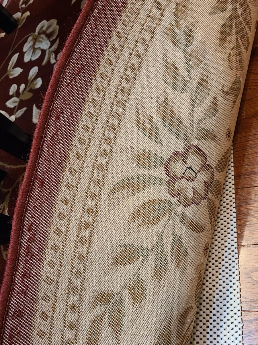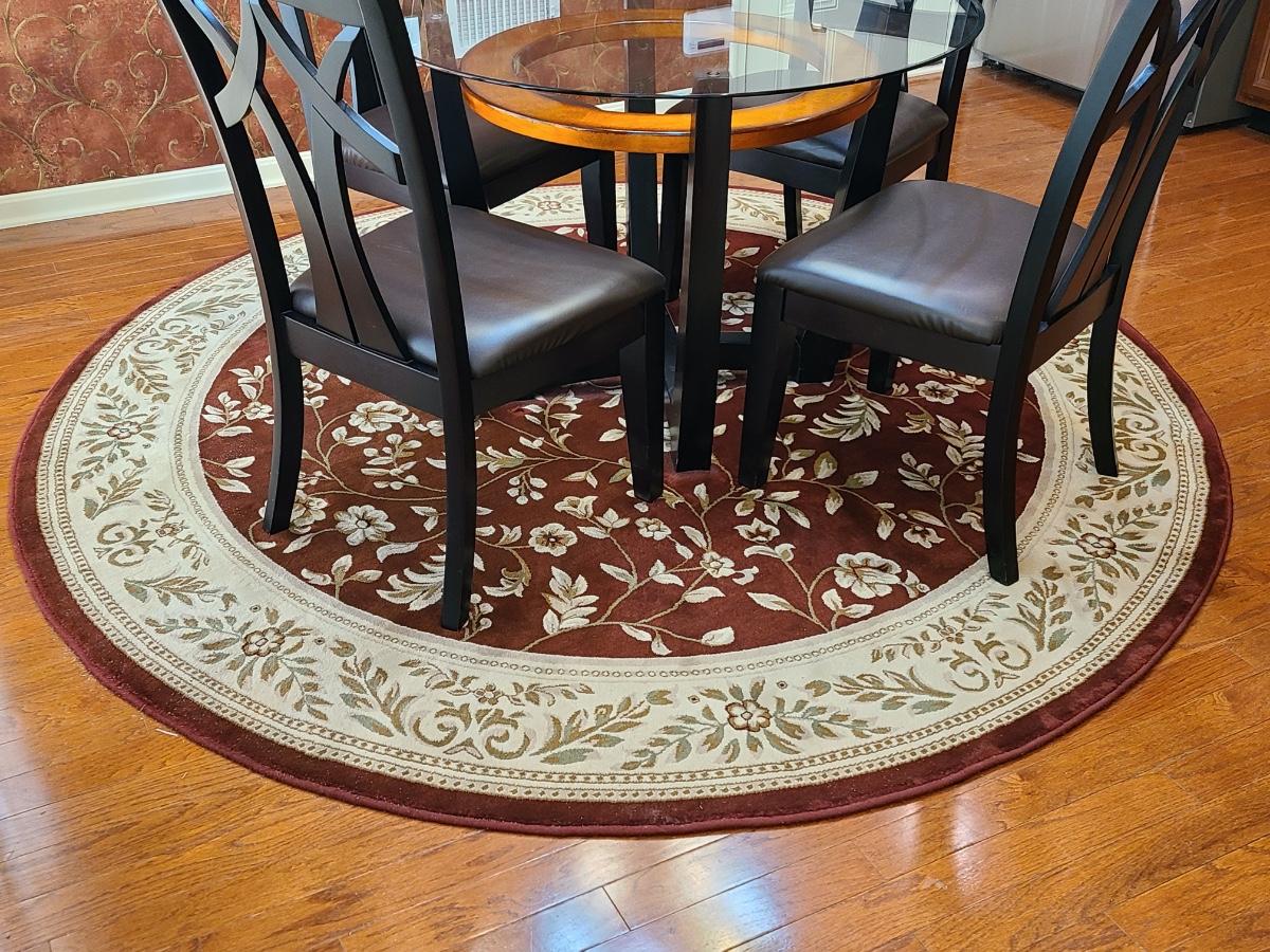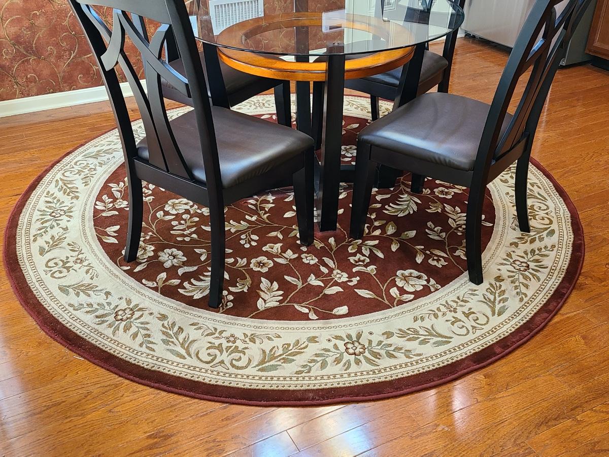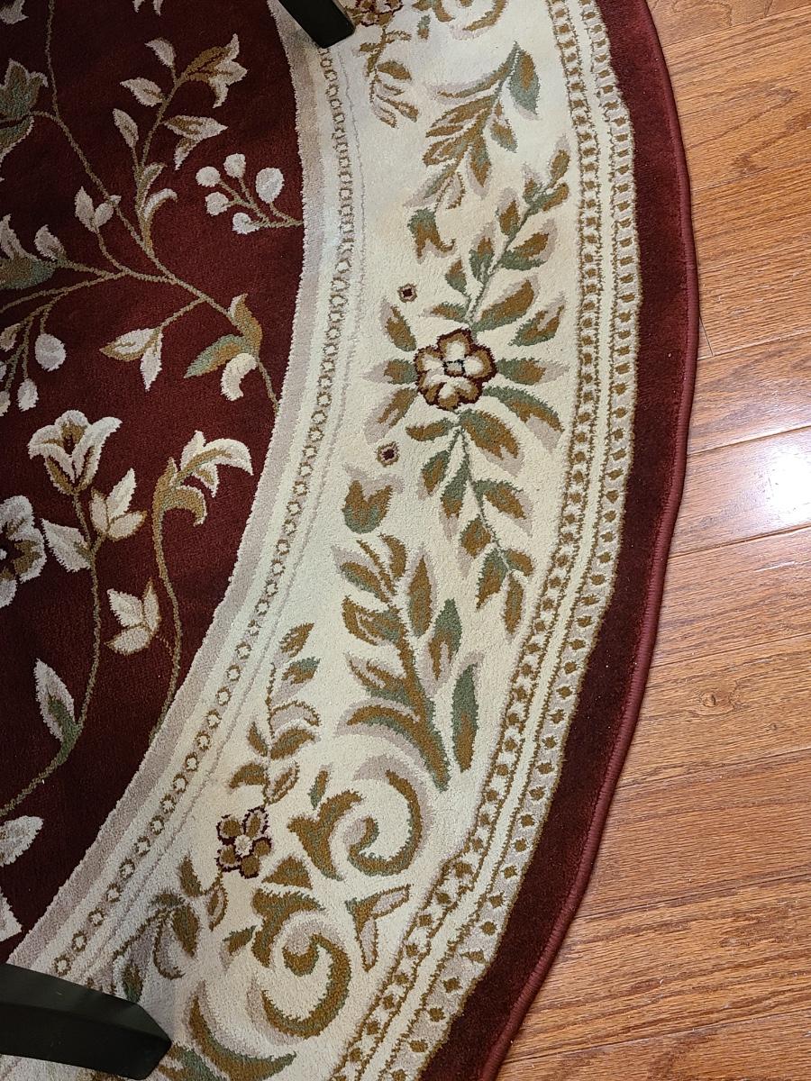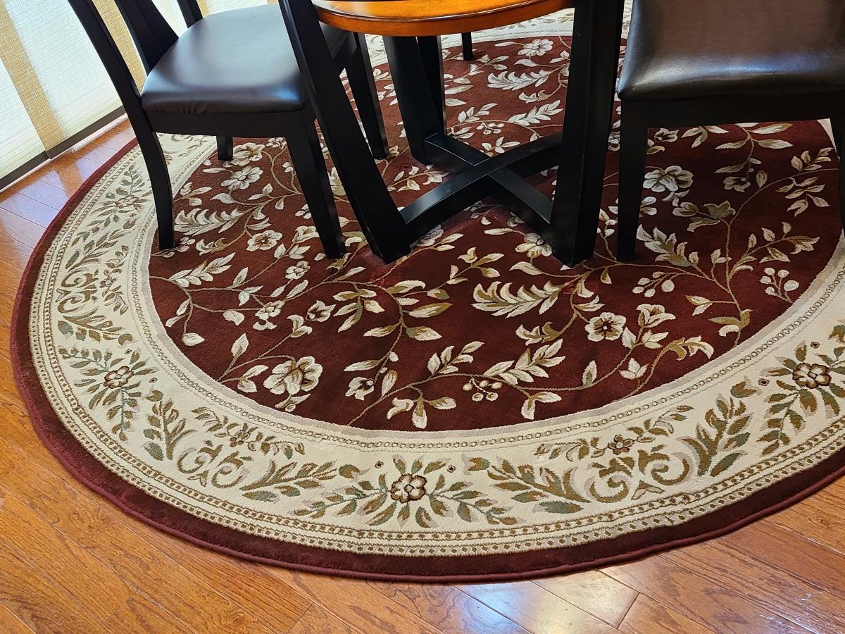 This lovely accent rug, is perfect for an entryway or under a dining table. Has red/maroons, beige and soft sage floral designs. Has been lightly used for home staging, so a light vacuum and close to new! The pictures show condition, measurements if taken, and what is included in the lot. Due to the large amount that we photograph and the time frame, we are not always able to take measurements. All items unless noted, are pre-owned and have been used. If you purchased furniture, you must bring help. We do not allow one person to carry large furniture out on their own. Bring help, tools and a truck for the safety of our client’s homes, and your personal safety. Any damages that result to the property including walls, and floors due to moving of the furniture will be charged to the buyer. Company policy. Thank you.
