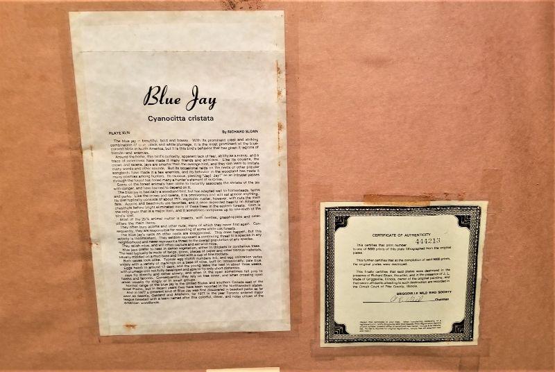 Lot #3 Large Framed Richard Sloane Bird Print - Blue Jay