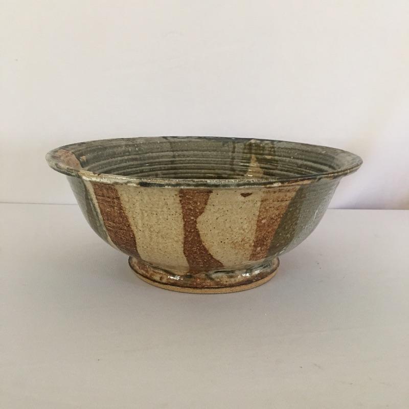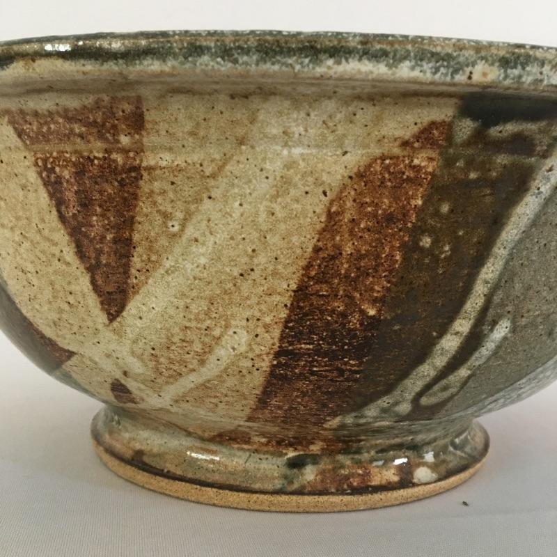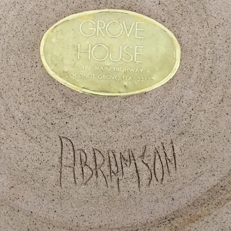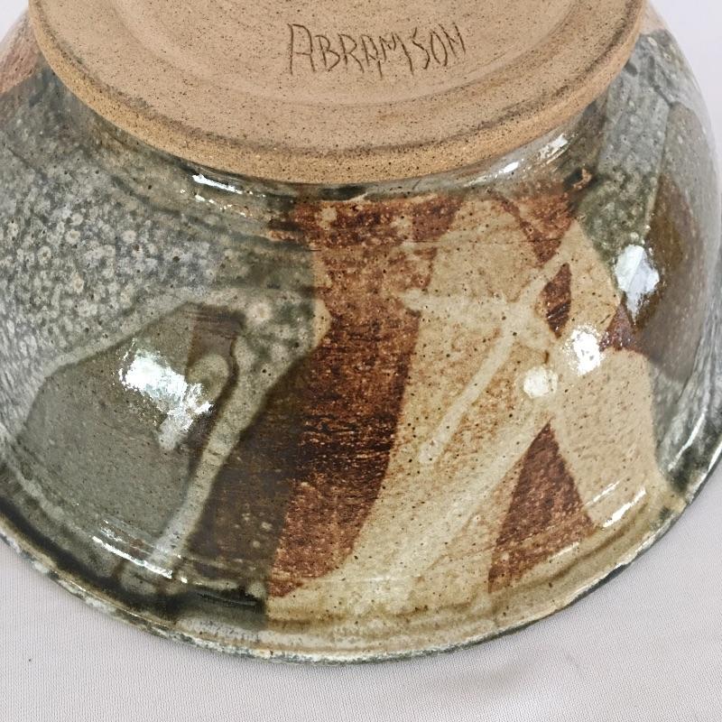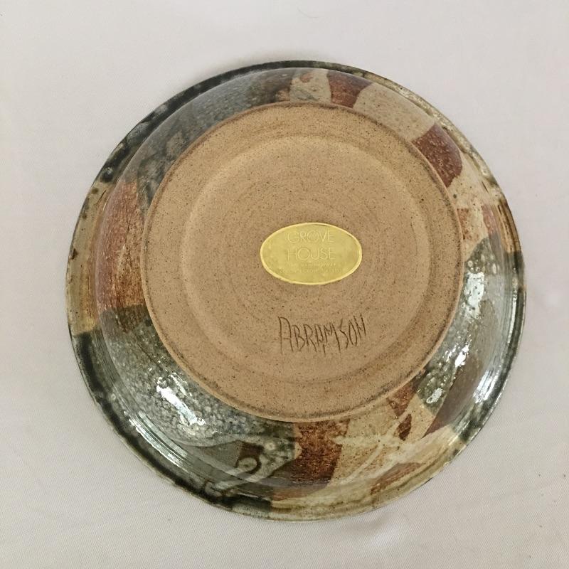 Large handmade pottery bowl is signed Abramson from the Grove House in Coconut Grove Fl. A magnificent piece of artwork, this multi-purpose bowl will look great anywhere choose. Bowl measures 15”D x 5.75” tall.