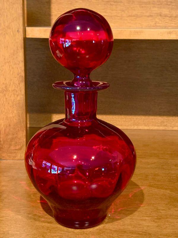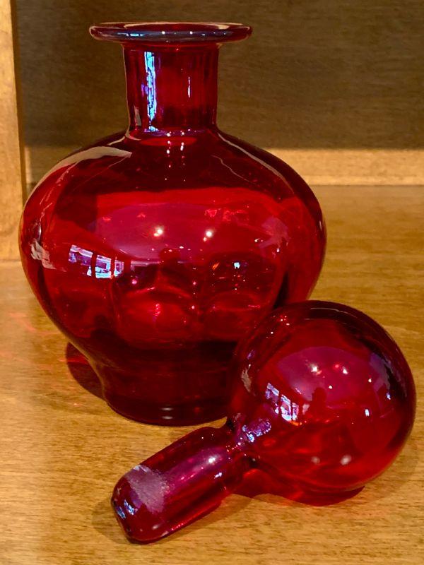 lOT 3 MCM BLENKO RED GLASS DECANTER BIG BALL STOPPER
