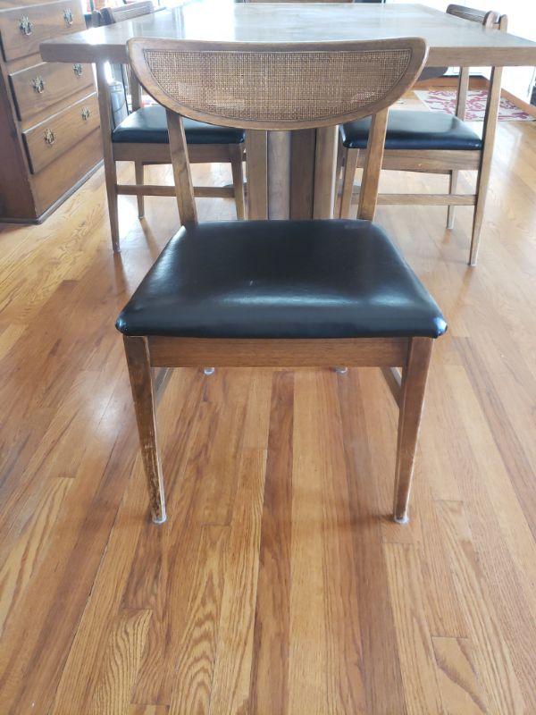 Mid Century Modern Dining Table & 4 Cane Wicker Back Chairs