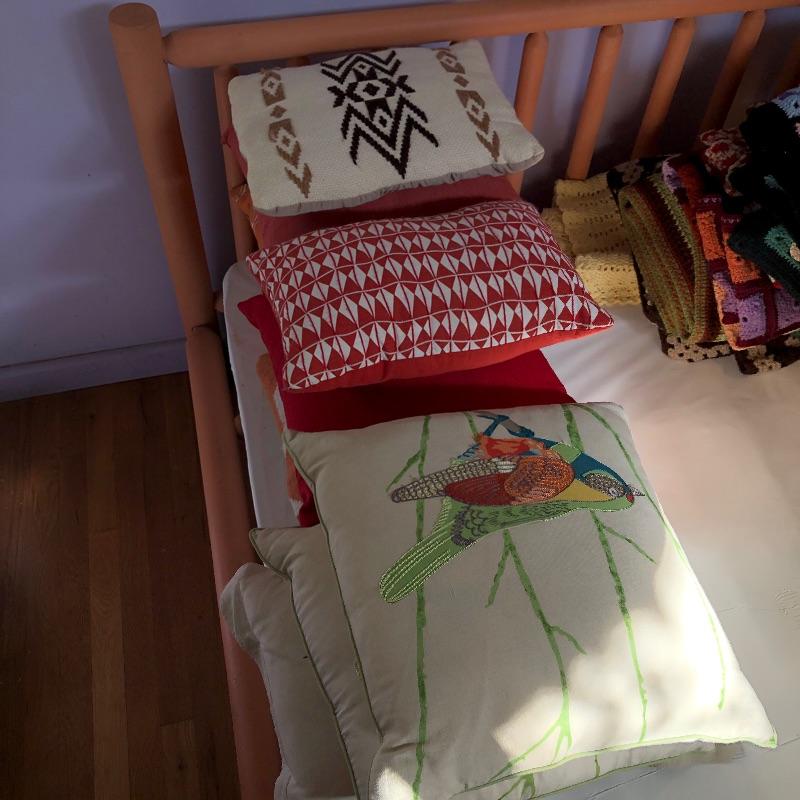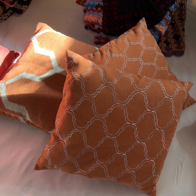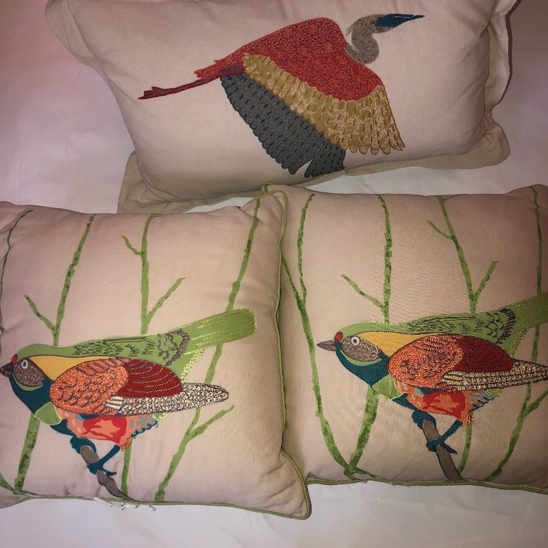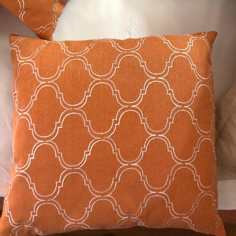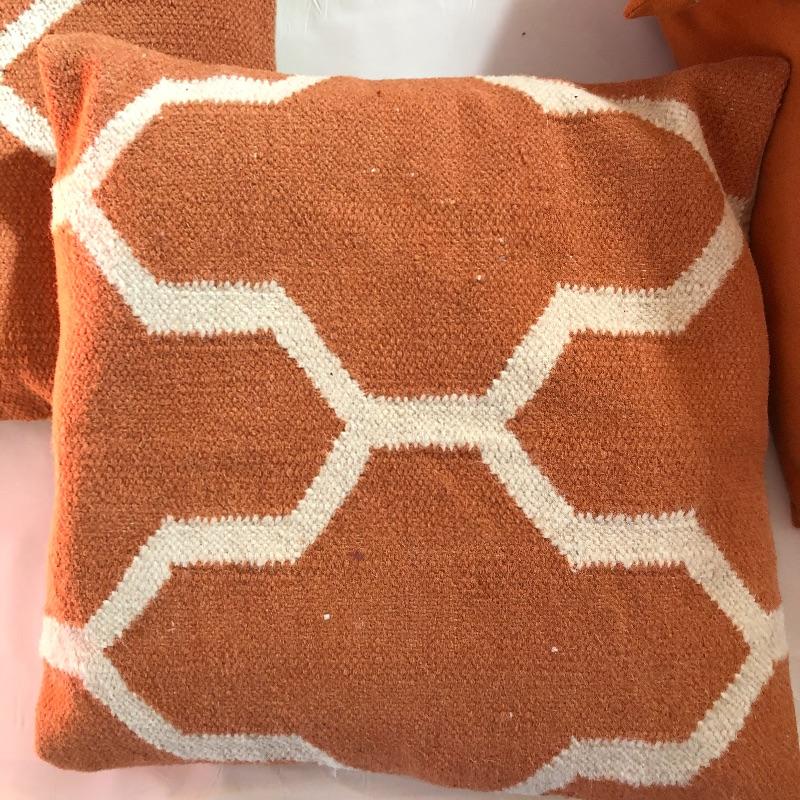 This lot contains eleven throw pillows, some matching. It contains vibrant colors such as red, pink, different shades of orange, and more. Most of them measure about 15.5” x 15.5”, for reference. These pillows are in great condition, with no tears, rips, or stains. There is some lint on a few of them but that is easy to remove. Local pickup only.