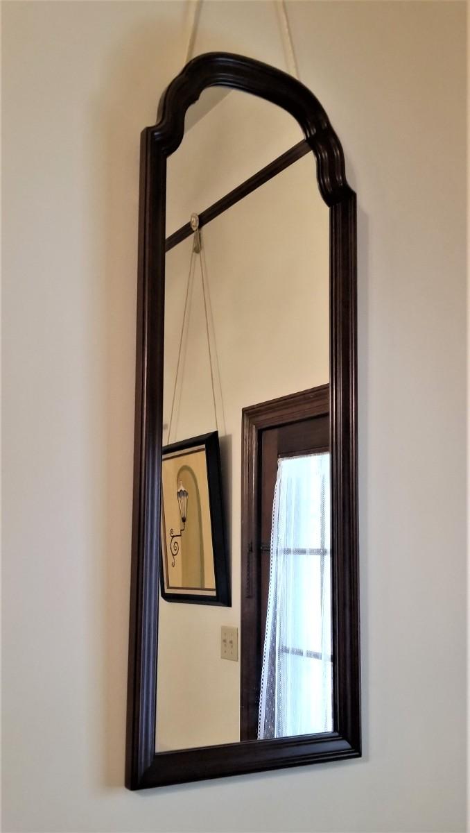 Nice pair of Ethan Allen Wall Mirrors with Rounded tops - wooden frames - heavy. Good condition Each is 15" across, 42.25" tall.
