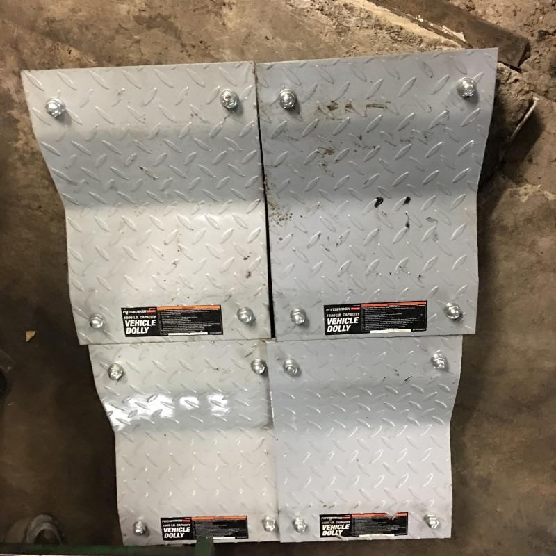 Four Pittsburgh vehicle dollies with a 1500 lb. capacity each. Make moving your car around your shop or garage an easy task with this set of dollies. Vehicle Dollies measure 11.75” x 16” x 4.5” each.