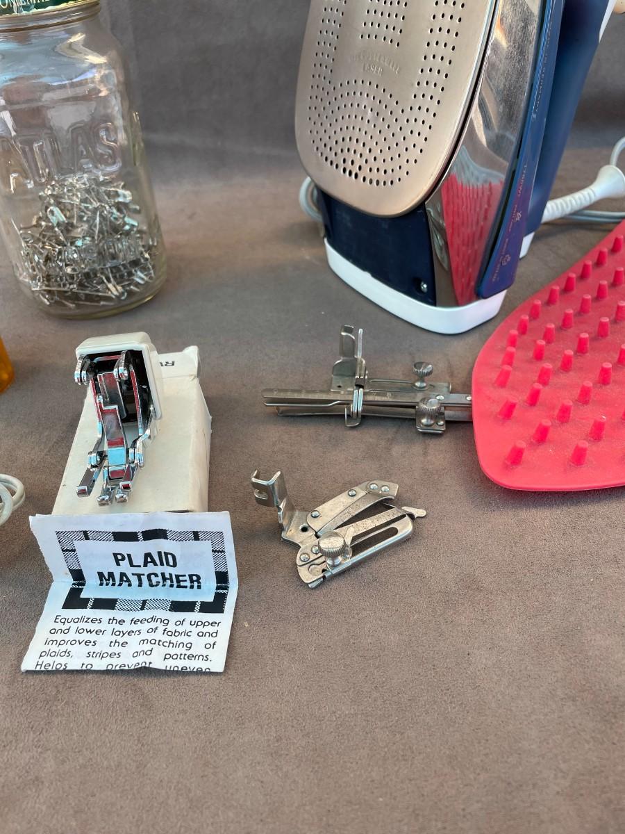 Lot 3 Rowenta Pro Master Iron, CNI Mini Iron, 3 Presser Feet, & more.