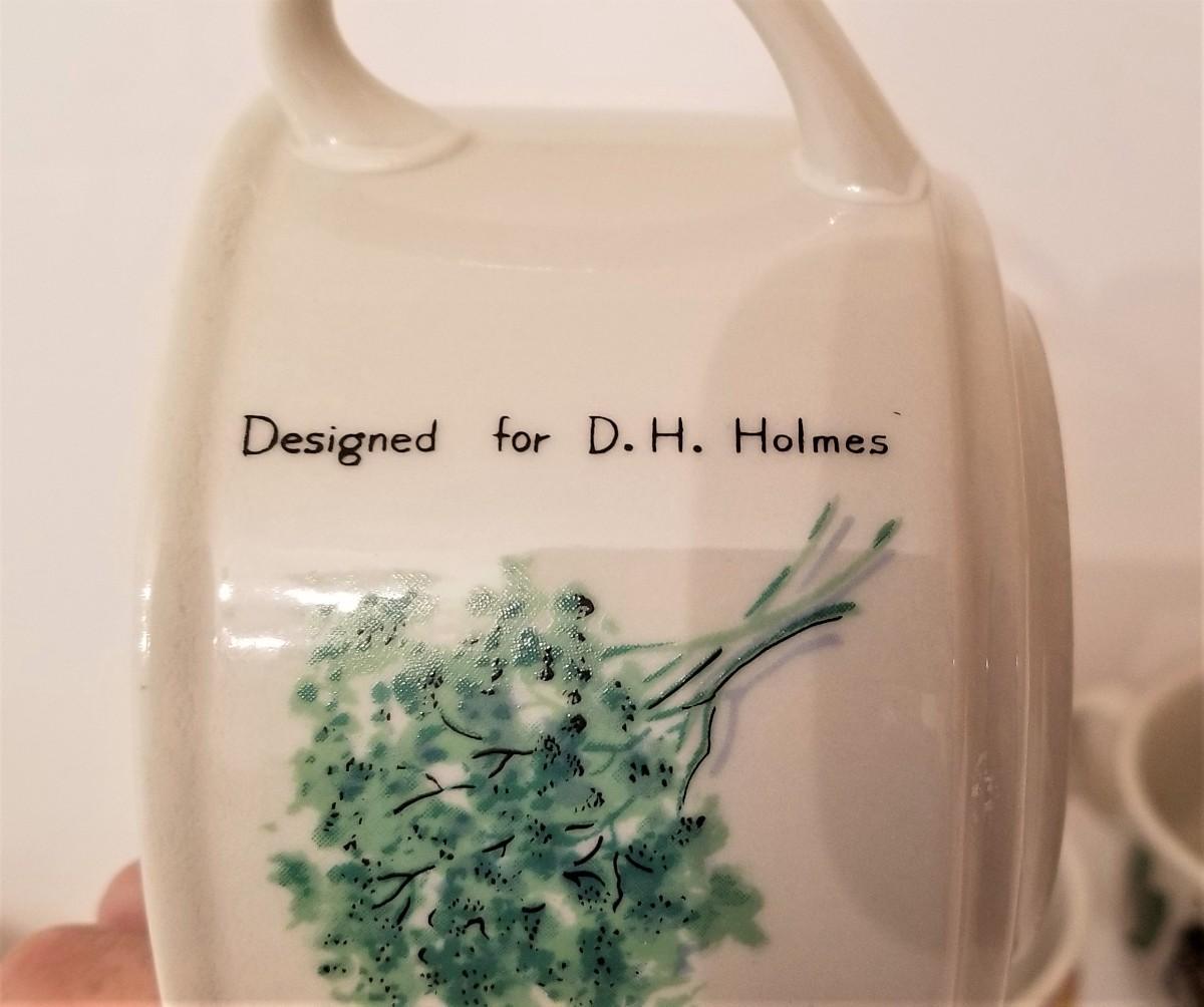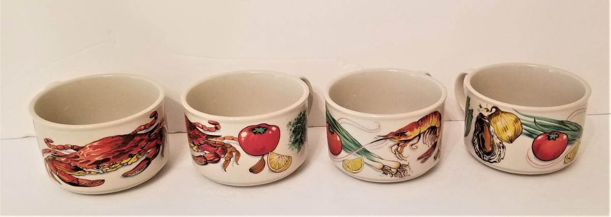 These sets are getting harder to find, and this one is in great condition. Set of 4 (retired) handled gumbo/soup mugs designed for D.H. Holmes. Each is 4.5" across, 3.25" tall. All in good condition.