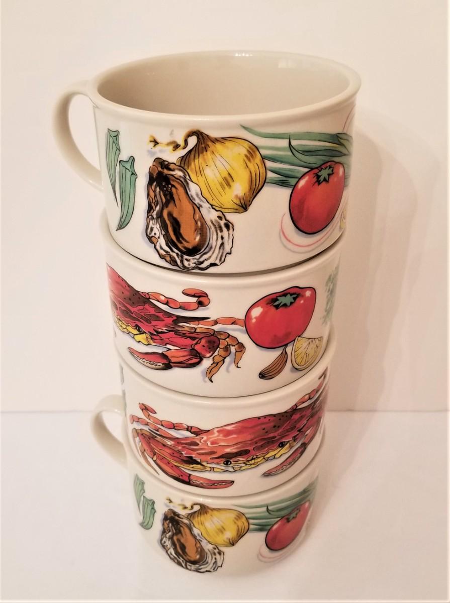 Lot #3 Set of 4 Retired D.H. Holmes Gumbo Mugs