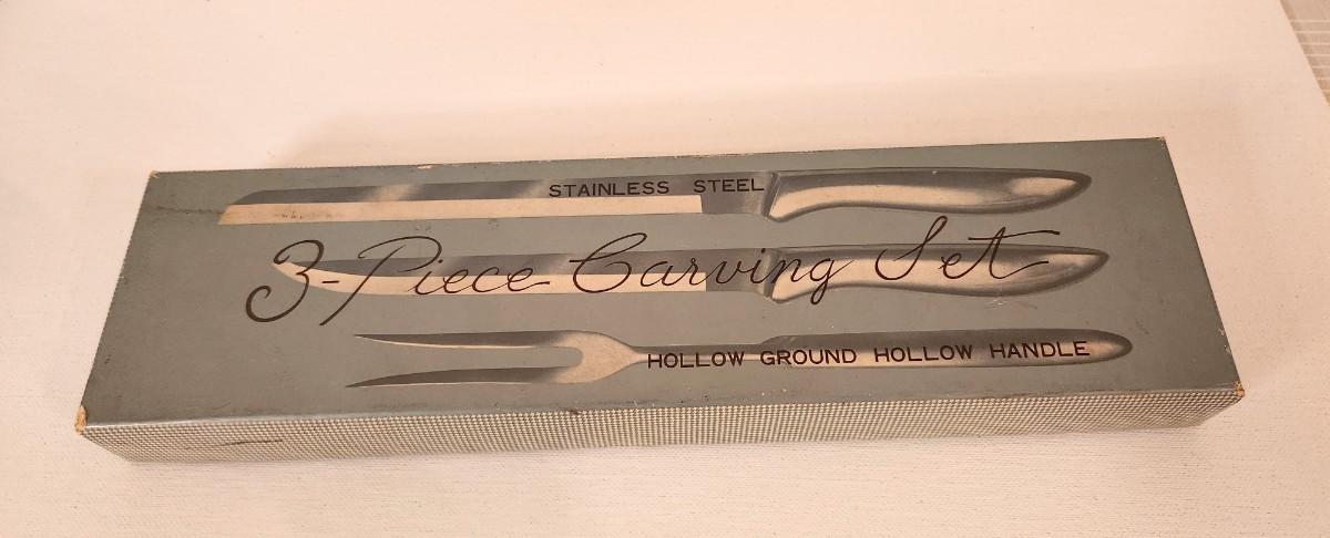 Vintage Stainless Steel Carving Set - unused - new in box - vintage - 3 pieces.
