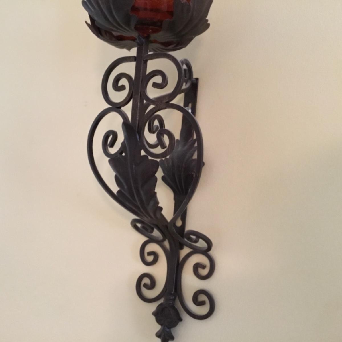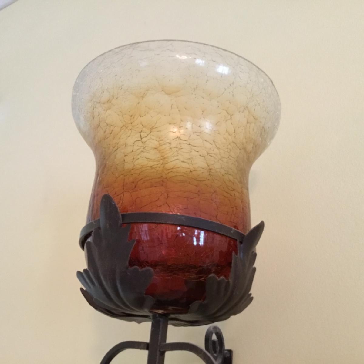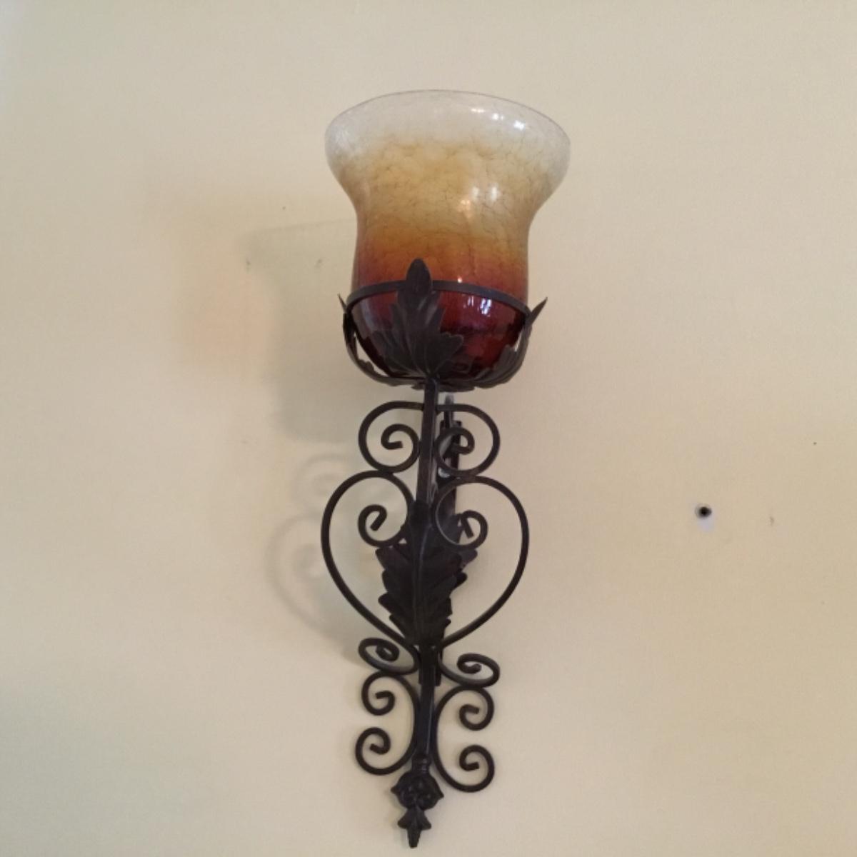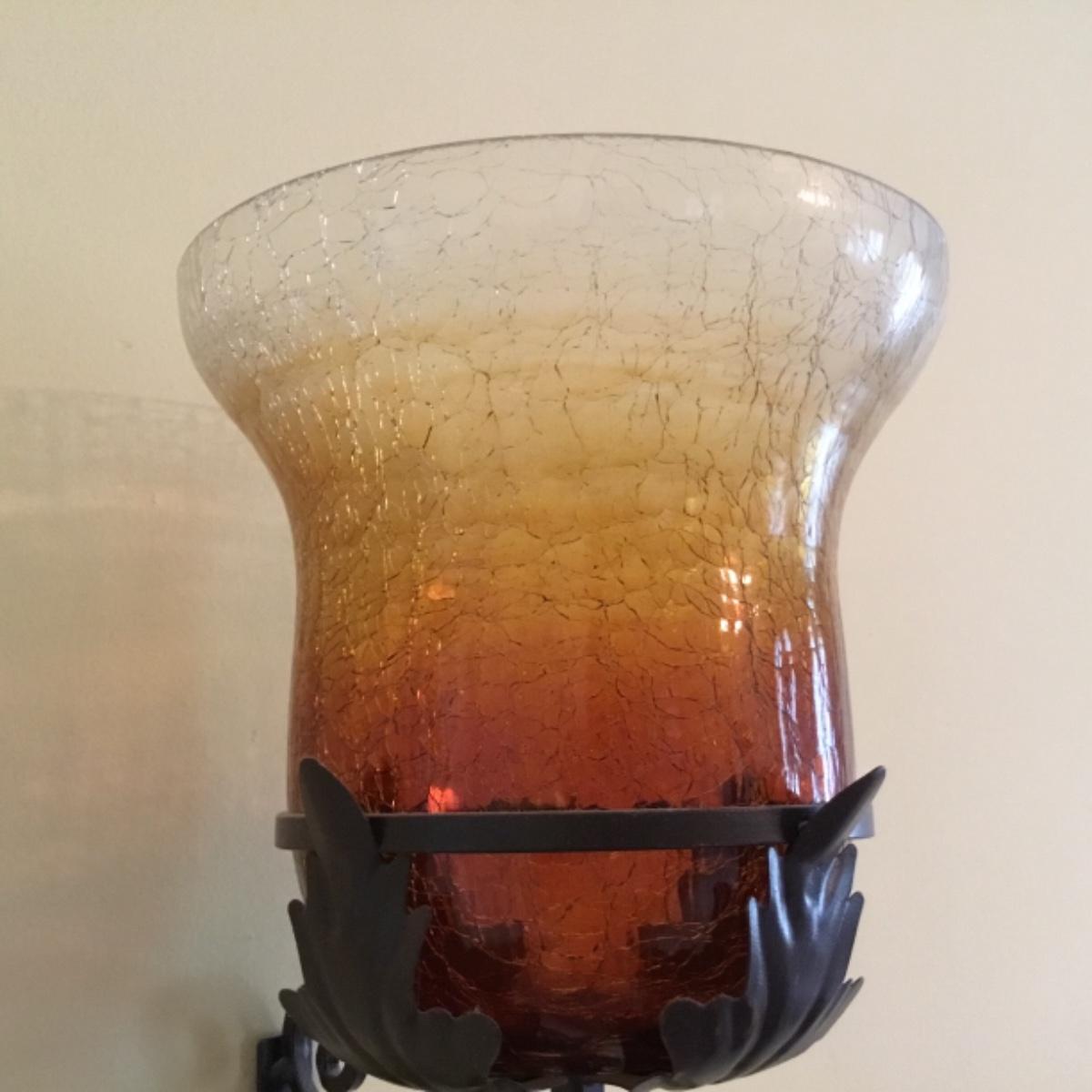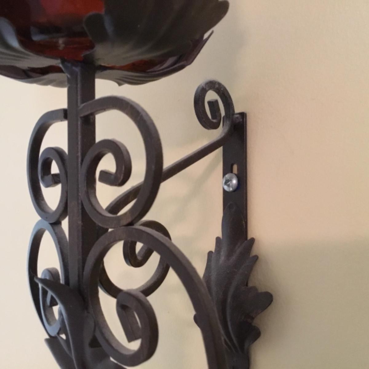 Lot includes a stunning image of the Grand Canyon matted and framed with measurements of 41.5”x35”. Print is behind plexi-glass, there is no signature but “˜October 16, 2005’ is written on the print. Two sconces are approx. 16” vertically tall. Glasses can be removed from the mount. See photos for details. Local pickup only.