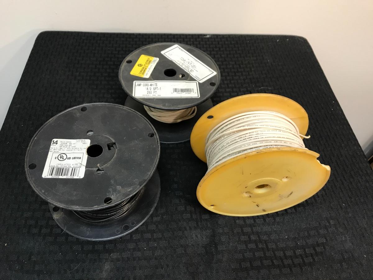 Lot of Electrical Wire Spools Solid Copper, Lamp Cord, & More
