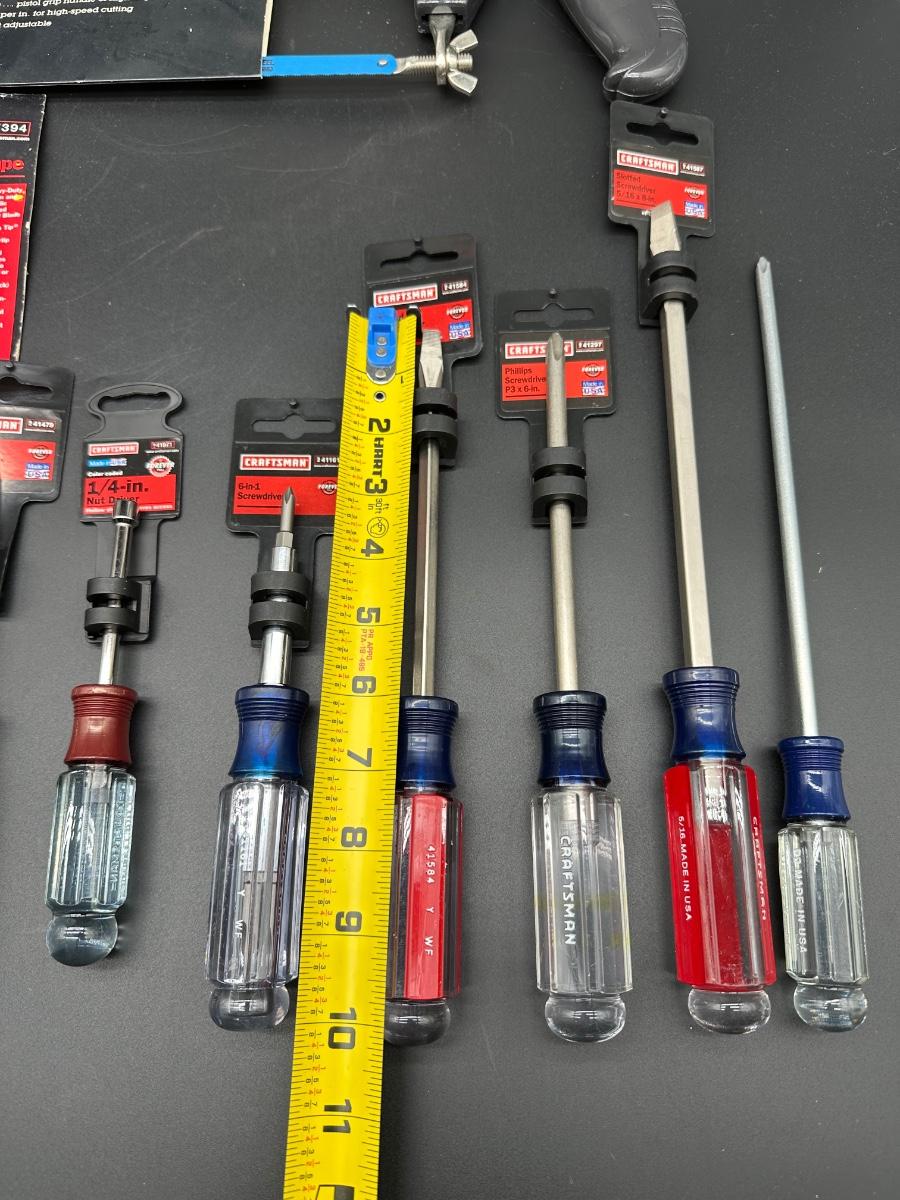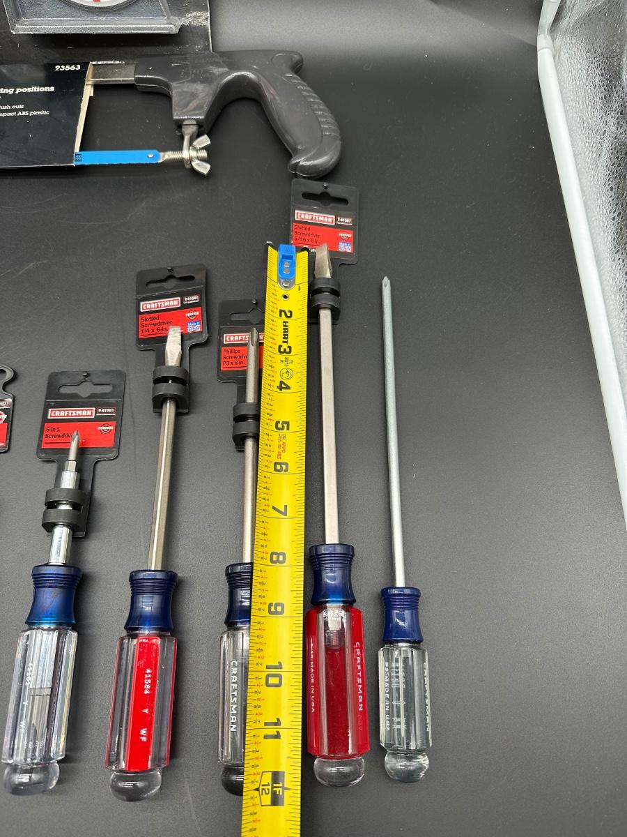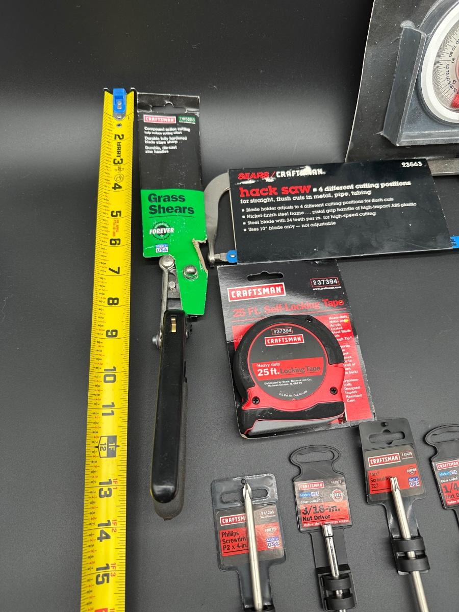 Lot #3 USA Craftsman Screwdrivers & Hand Tools – NOS w/ Tags – Tape, Protractor, Hack Saw