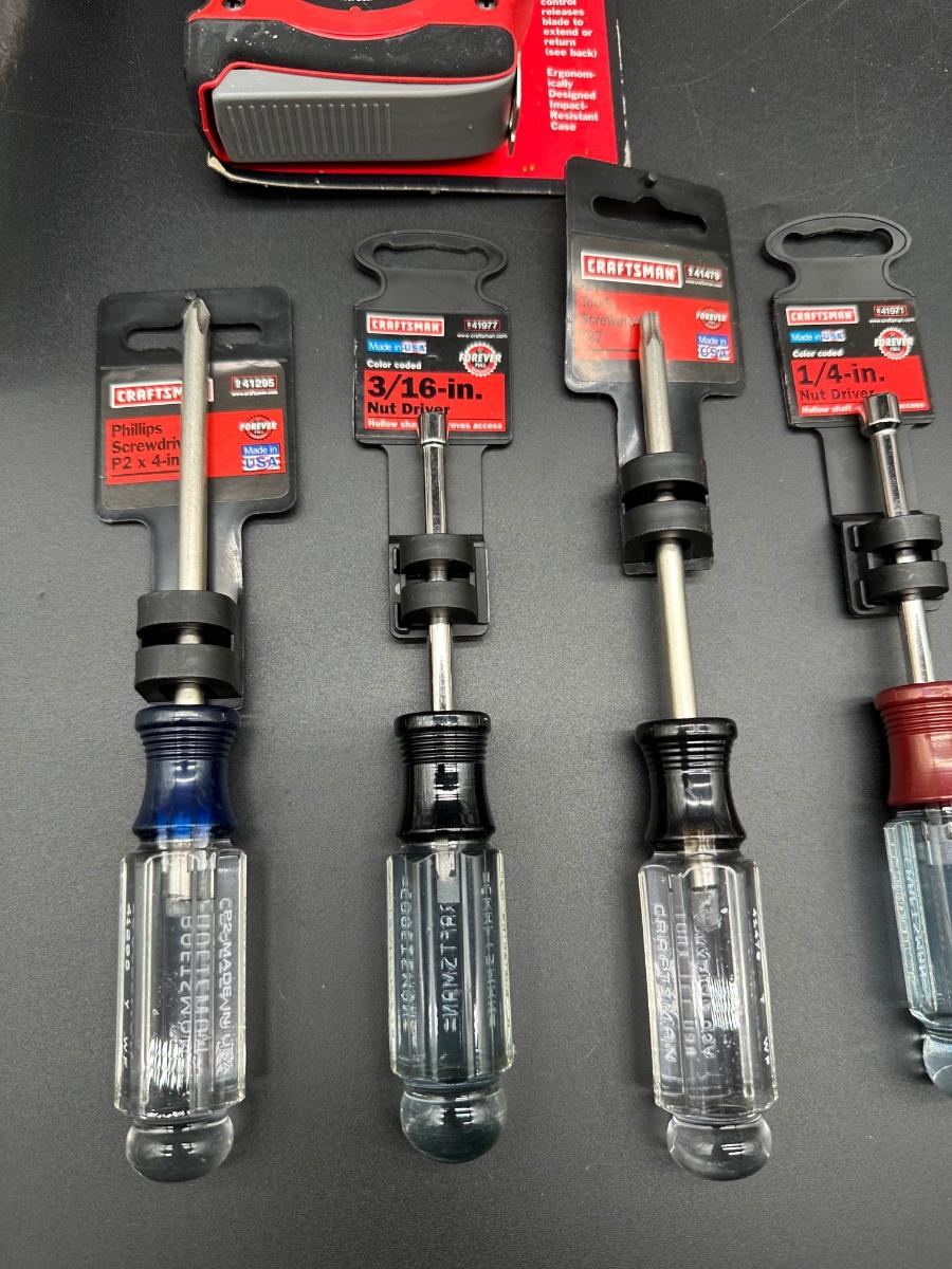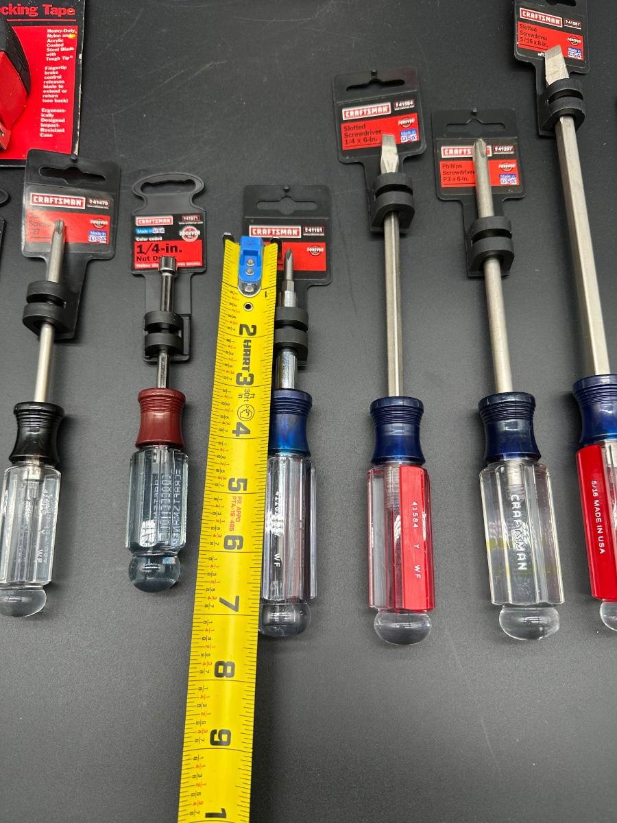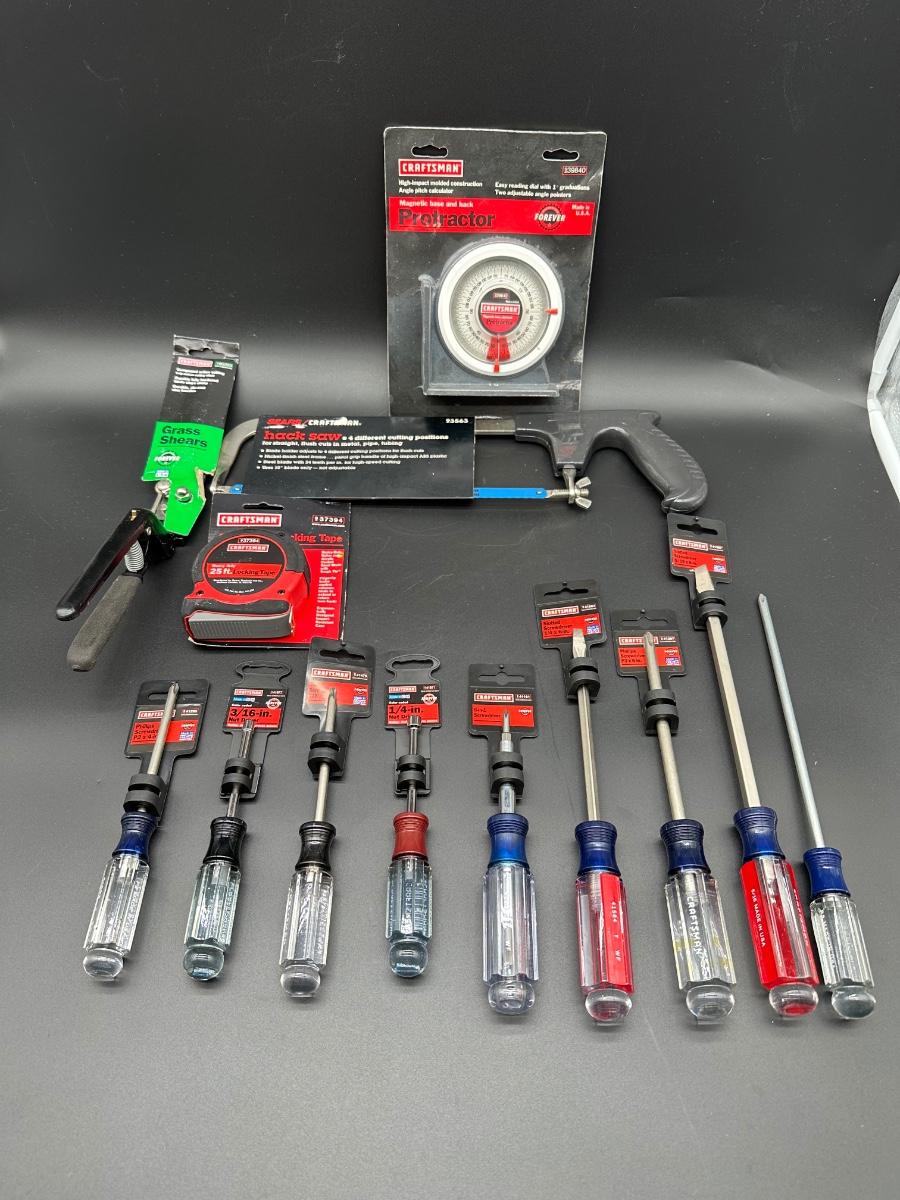 Lot #3 USA Craftsman Screwdrivers & Hand Tools – NOS w/ Tags – Tape, Protractor, Hack Saw
