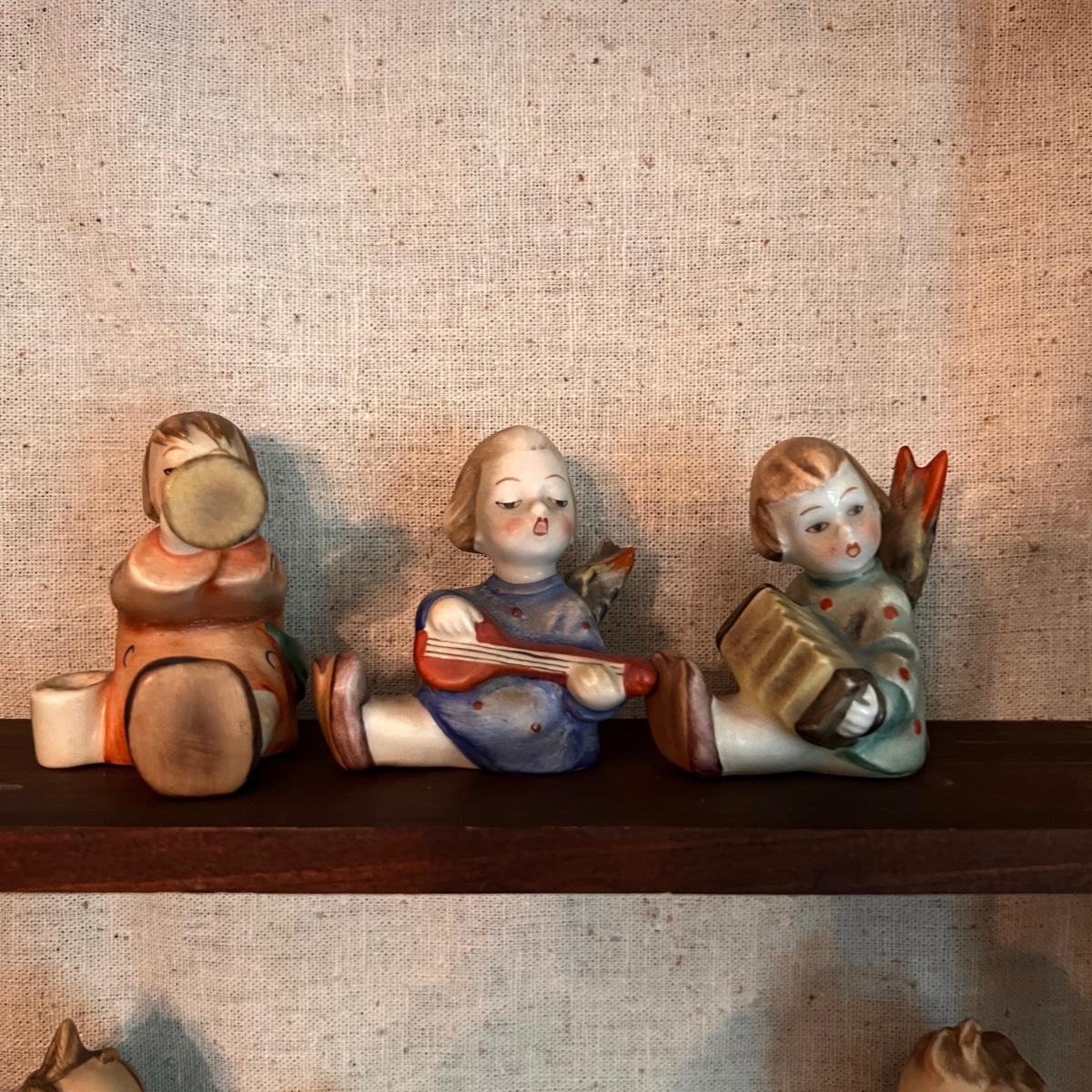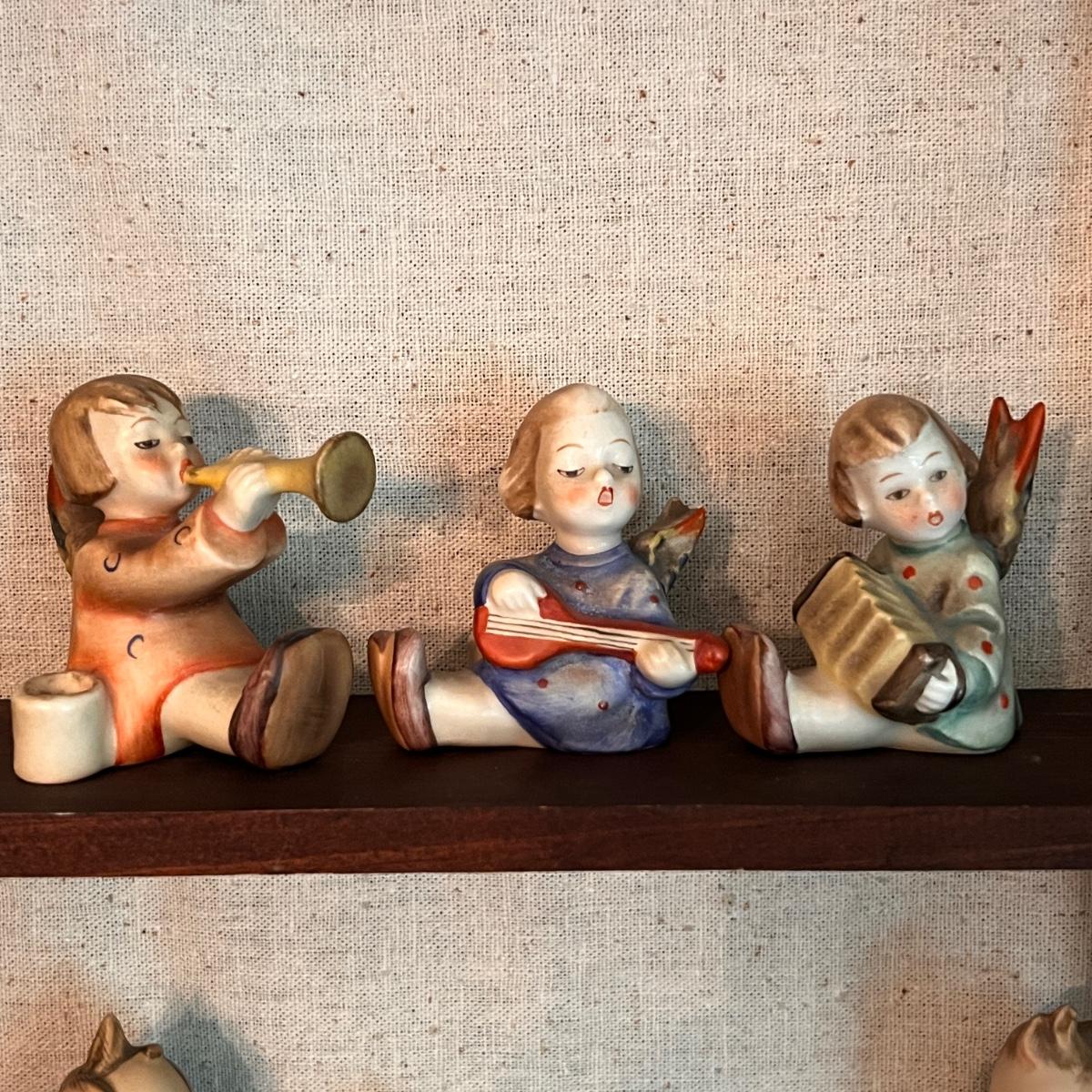 3 stamped on the bottom Hummels (pic coming soon). Candle holder Angel playing horn. Angel playing let. Angel playing accordion.