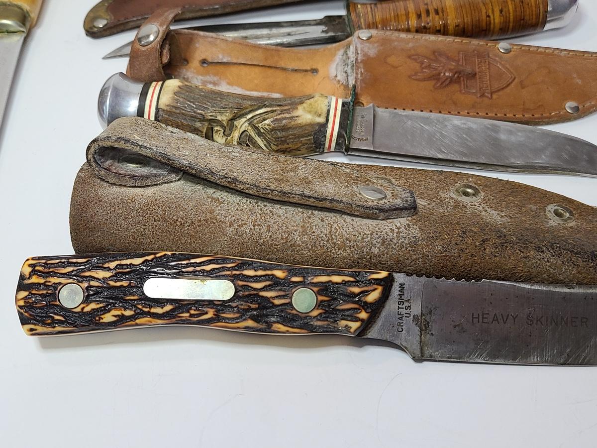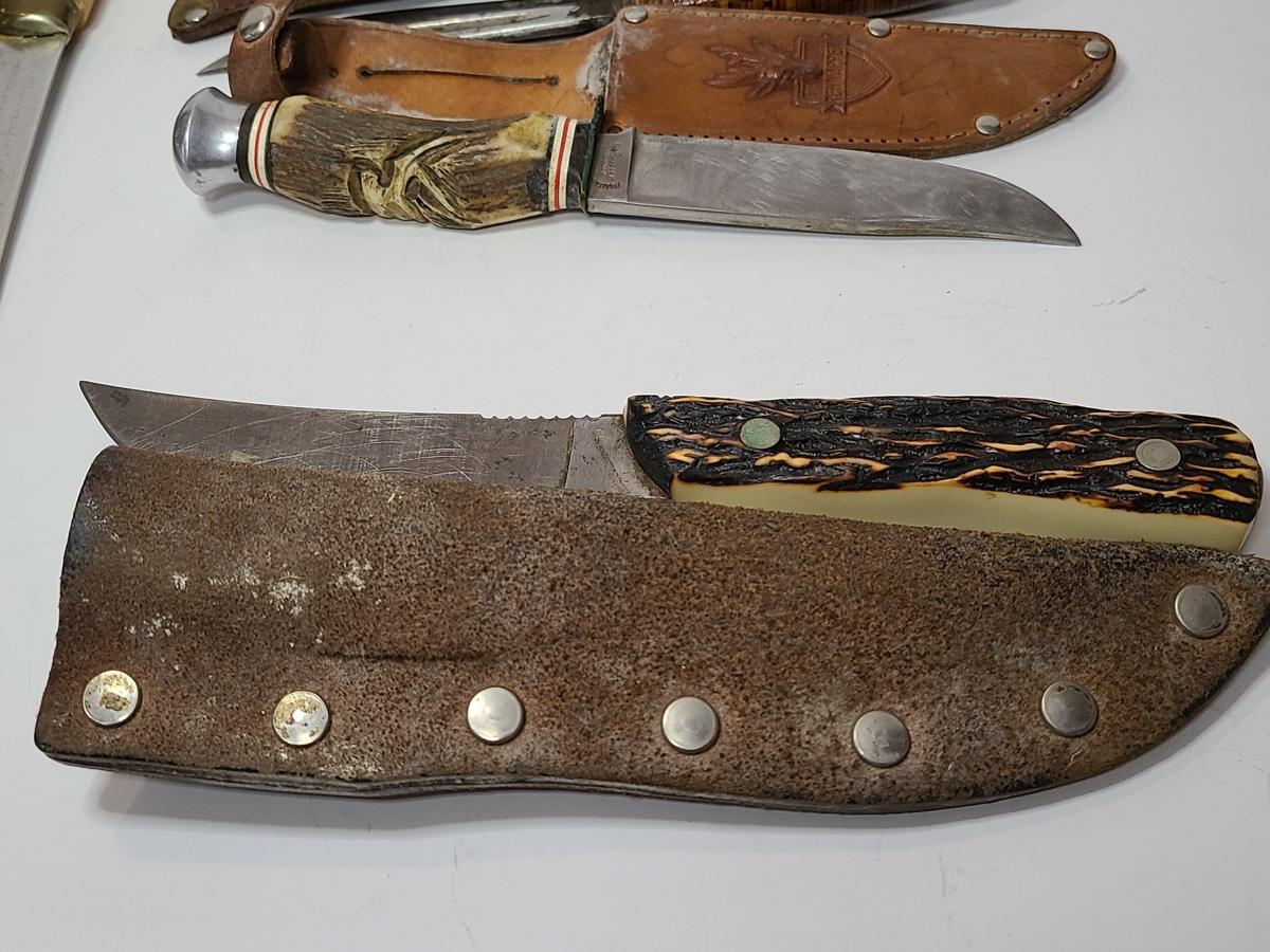 Vintage hunting knives, newer tactical knife, deer horn hunting knives and more. Please see all pictures as they are the best representation of the items. The pictures show condition, measurements if taken, and what is included in the lot. Due to the large amount that we photograph and the time frame, we are not always able to take measurements. All items unless noted, are pre-owned and have been used. If you purchased furniture, you must bring help. We do not allow one person to carry large furniture out on their own. Bring help, tools and a truck for the safety of our client’s homes, and your personal safety. Company policy. Thank you.