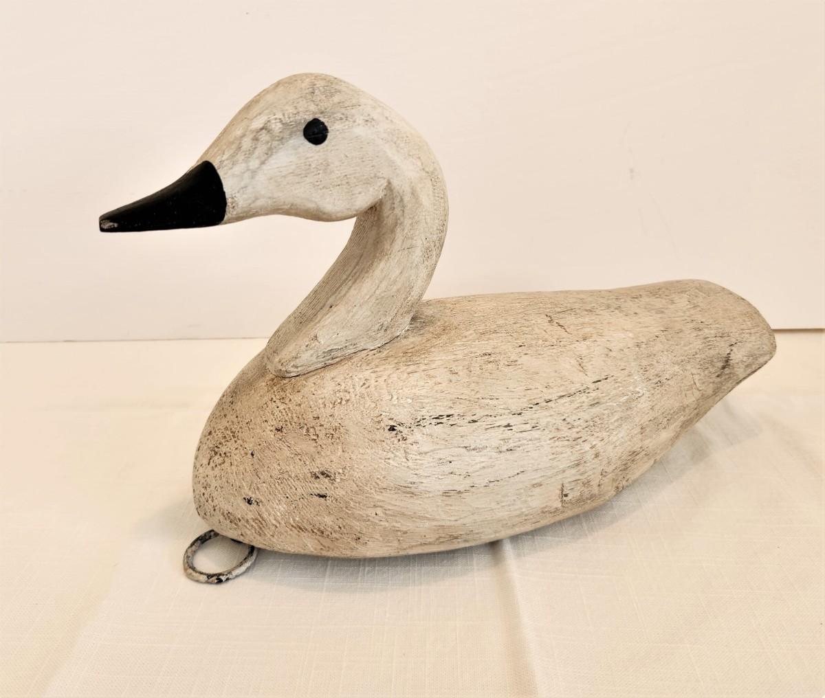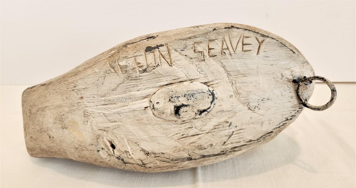 Good vintage painted decoy, signed by recognized decoy artist Alton Seavey, ballast for weight - 12" long, 8" tall, good condition.