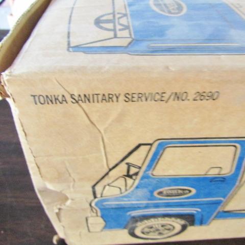 IT DOES INCLUDE A TONKA BOX BUT NOT THE ONE FOR THIS TOY. IT IS FOR A TONKA SANITARY SERVICE/NO 2690 (THAT TOY IS NOT AVAILABLE TO SELL) BOX IS IN GOOD CONDITION