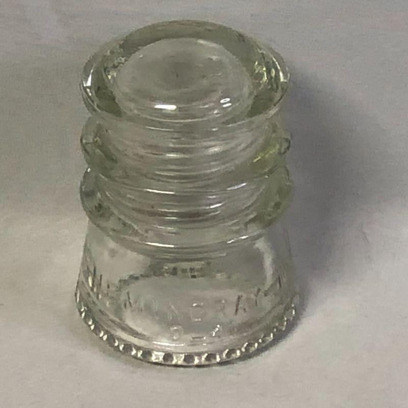 According to my limited Google search, this was made in 1936 (the mold was made in 1934 and the two dots after the O are added to the year). This insulator was used for telephone lines. Very clean and clear glass with no damage found. It stands about 3.25" tall.