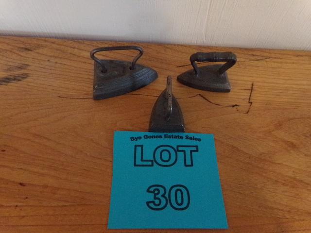 CAST IRON WITH NO. 2 ON IT, CAST IRON WITH NO. 0-1/2 AND CAST IRON. ALL 3 OF THESE ARE VINTAGE AND IN GOOD CONDITION.
