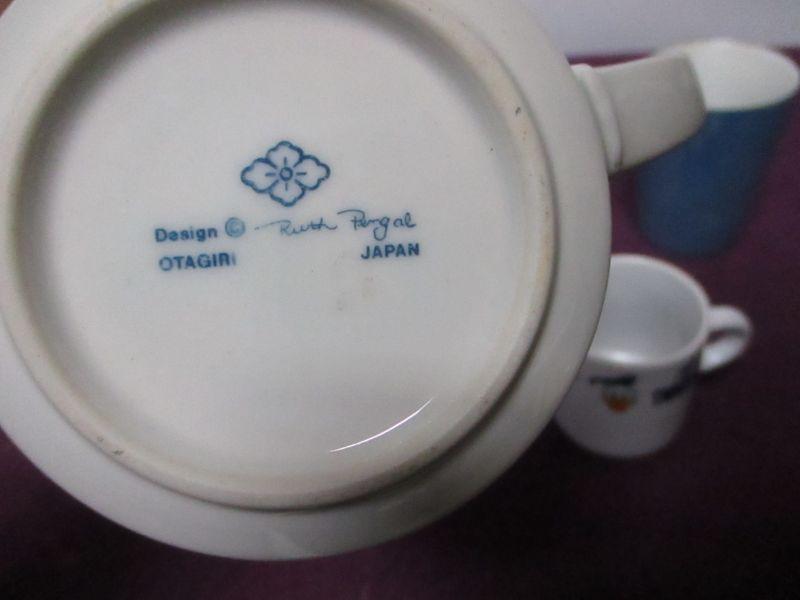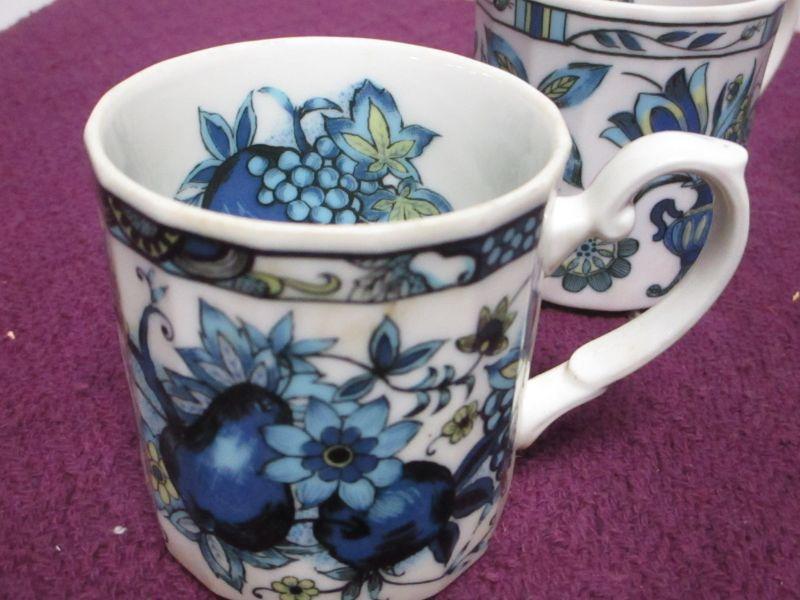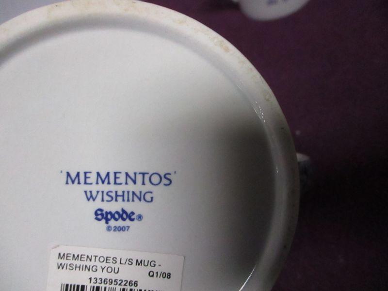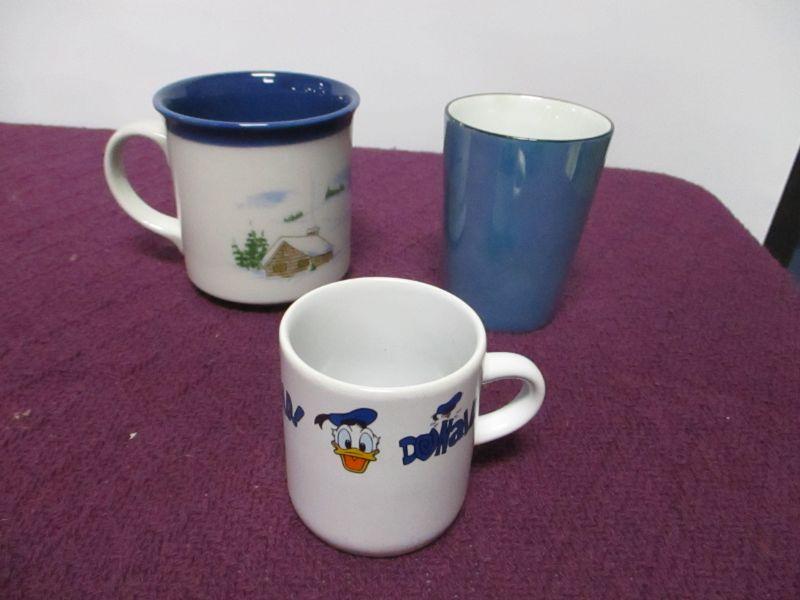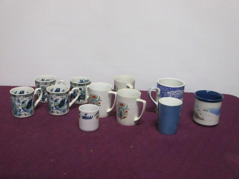 Lot includes Berggren Swedish Kaffetaren Porcelain Cups, Otagiri Japan Mug, Mementos Wishing Spode Mugs, and Disney Donald Duck Mug
