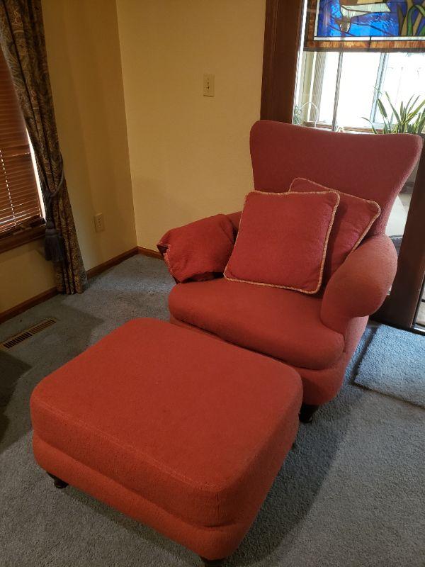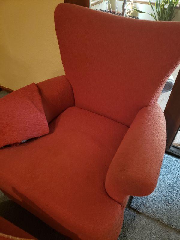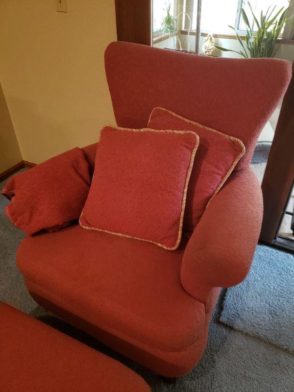 Lot 30: Large Vintage Red Chair and Ottoman