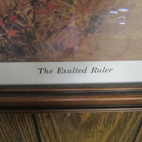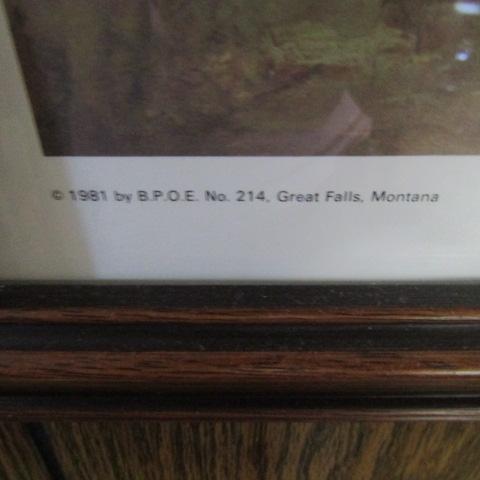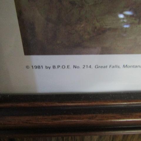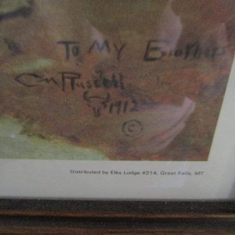 FRAMED PICTURE BY CHARLES M RUSSELL "THE EXALTED RULER" GIVEN TO THE ELKS LODGE IN GREAT FALL MONTANA IN 1912 BY RUSSELL WHERE IT HUNG TILL 1985. THE PAINTING WAS SOLD TO THE GREAT FALLS MUSEUM FOR 1.2 MILLION 25" X 20"