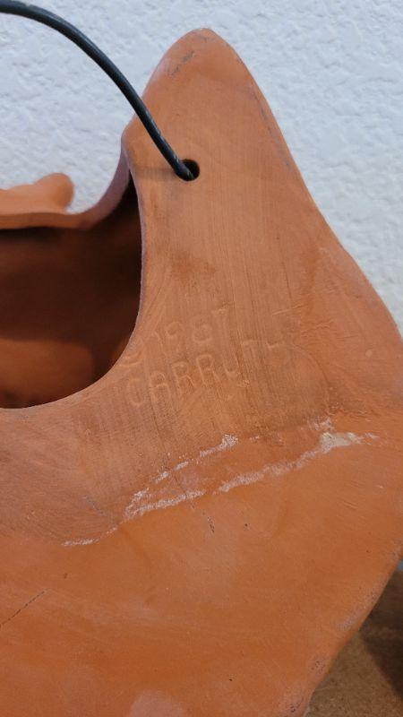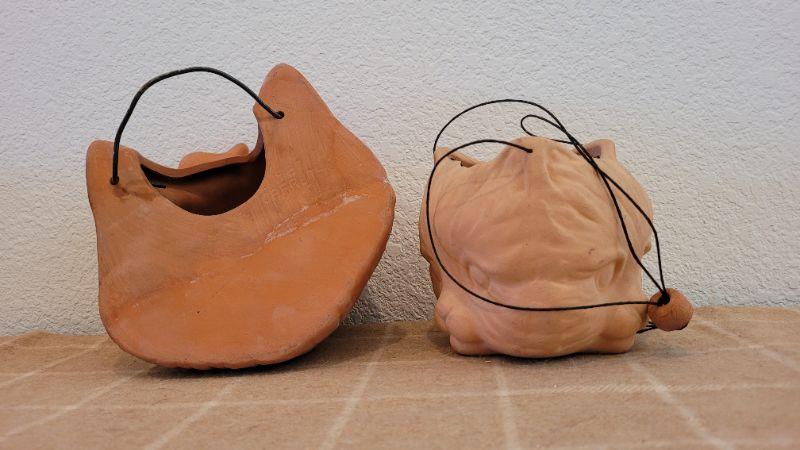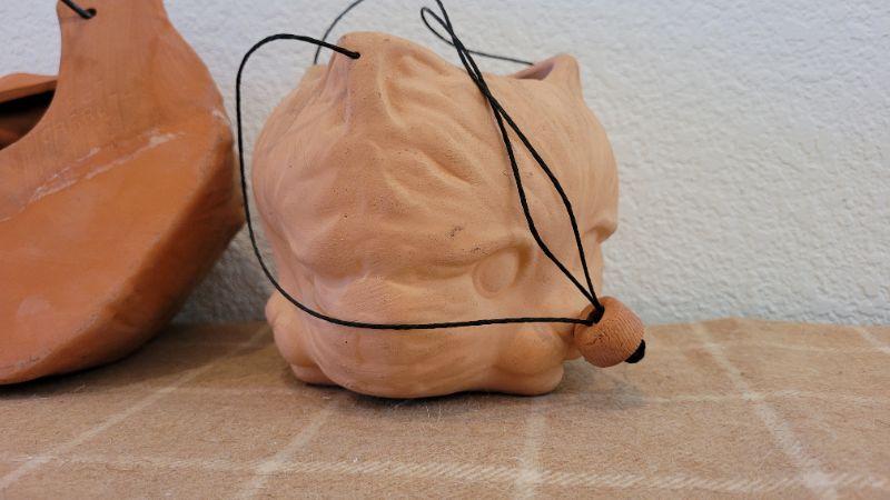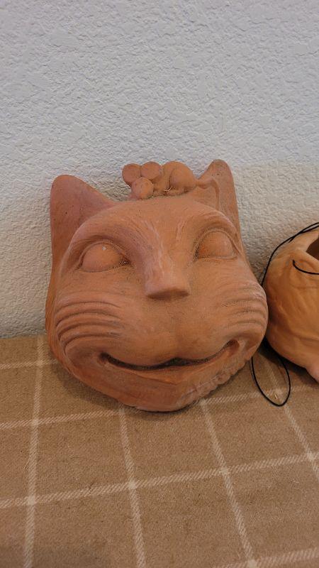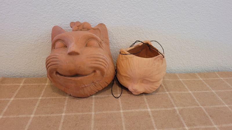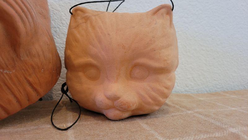 Lot 30: Vintage Clay Hanging Cat Themed Planters (Smaller is Triple Faced)