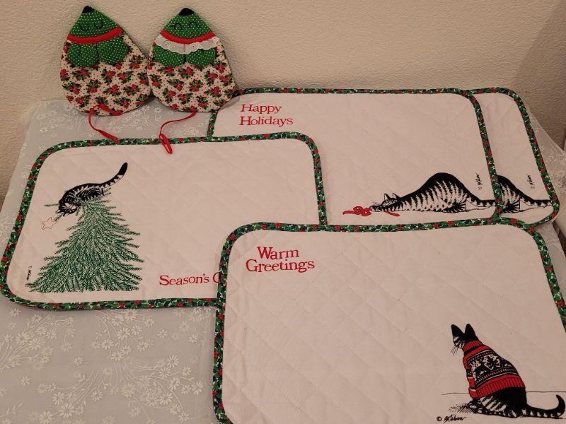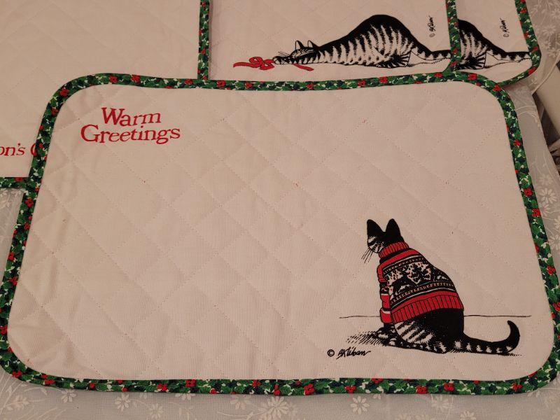 Lot 30: New Vintage Kliban Cat Placemats and 2 Mouse Hot Pads
