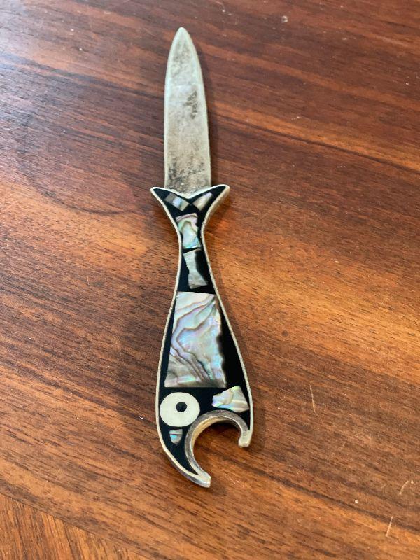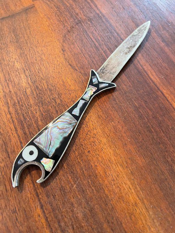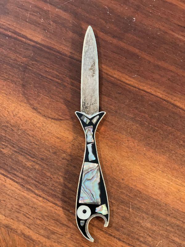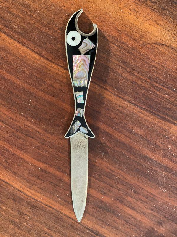 Vintage Inlaid Mother of Pearl Fish Letter/Bottle Opener