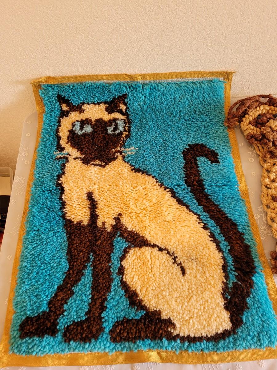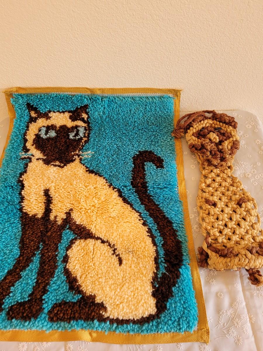 Lot 30: Vintage Mid Century Cat Hook & Latch Rug and Macrame Siamese