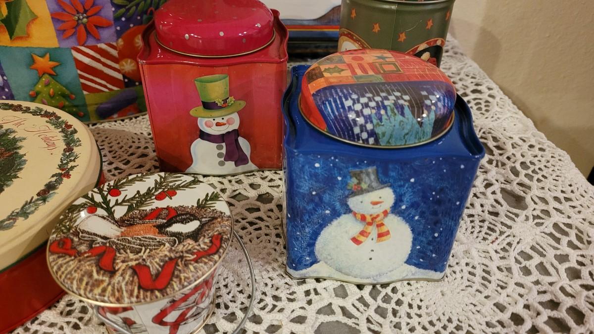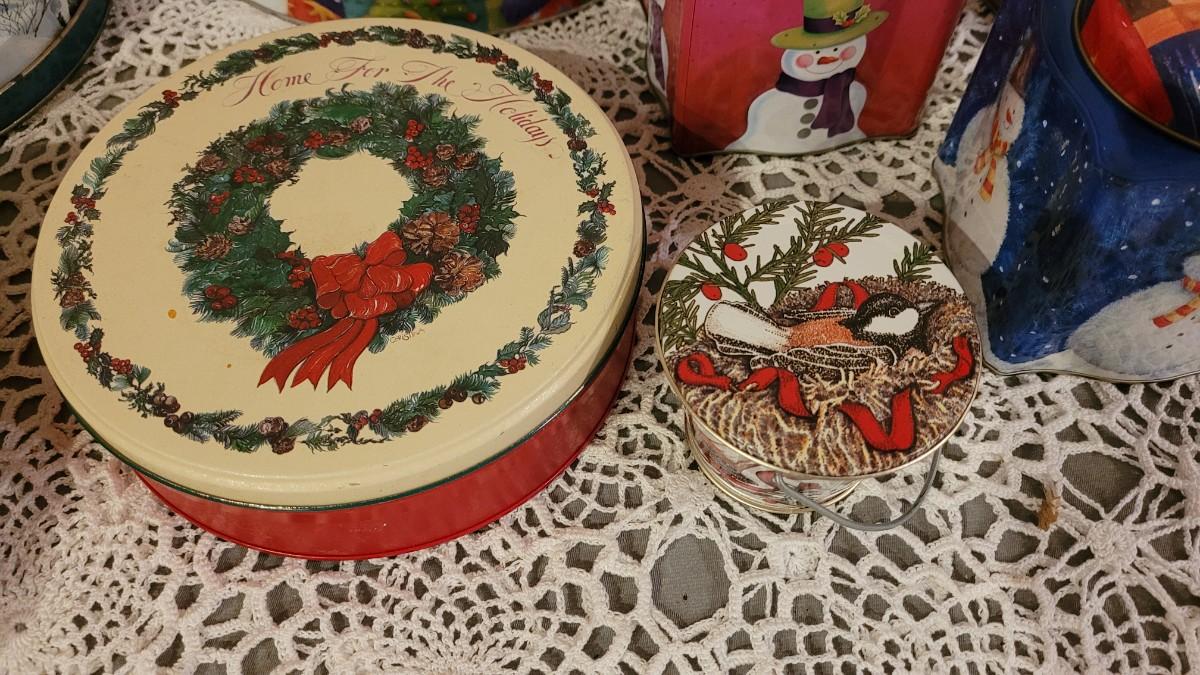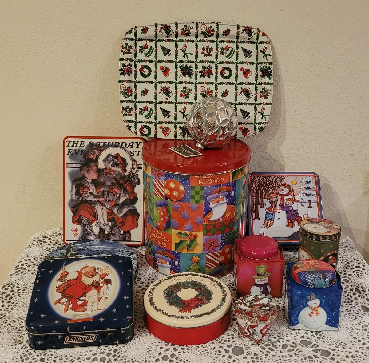 Lot 30: Vintage Christmas Tins with Tin Serving Platter
