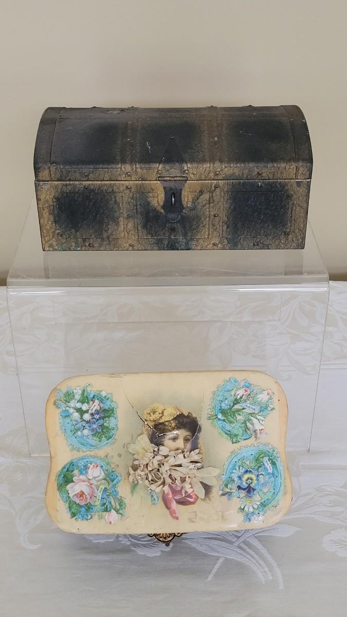 Lot 30: Antique Victorian Trinket Box and Metal Treasure Box