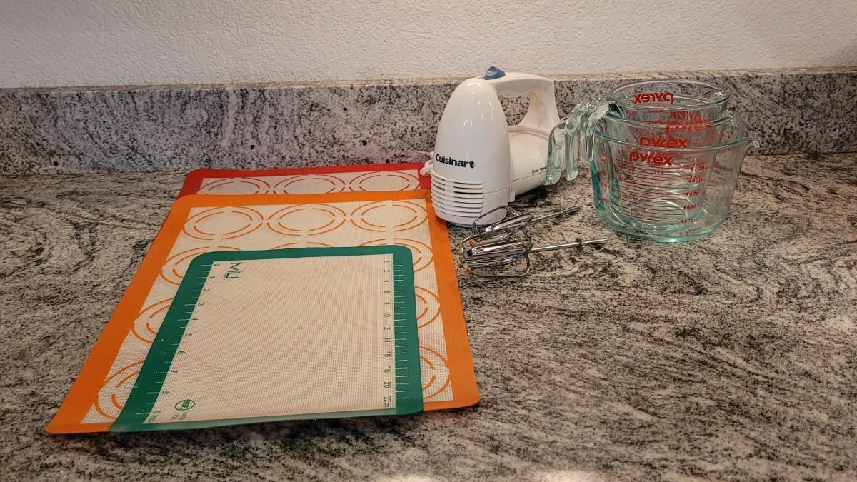 Lot 30: Baking Lot CUISINART Hand Mixer, PYREX Measuring Cups (3) and MIU Silicone Baking Mats (3)