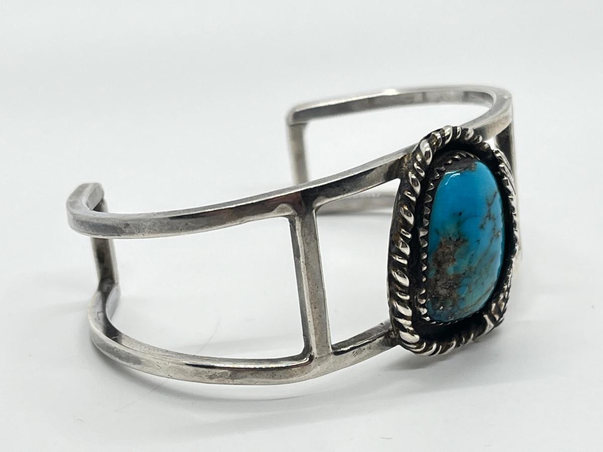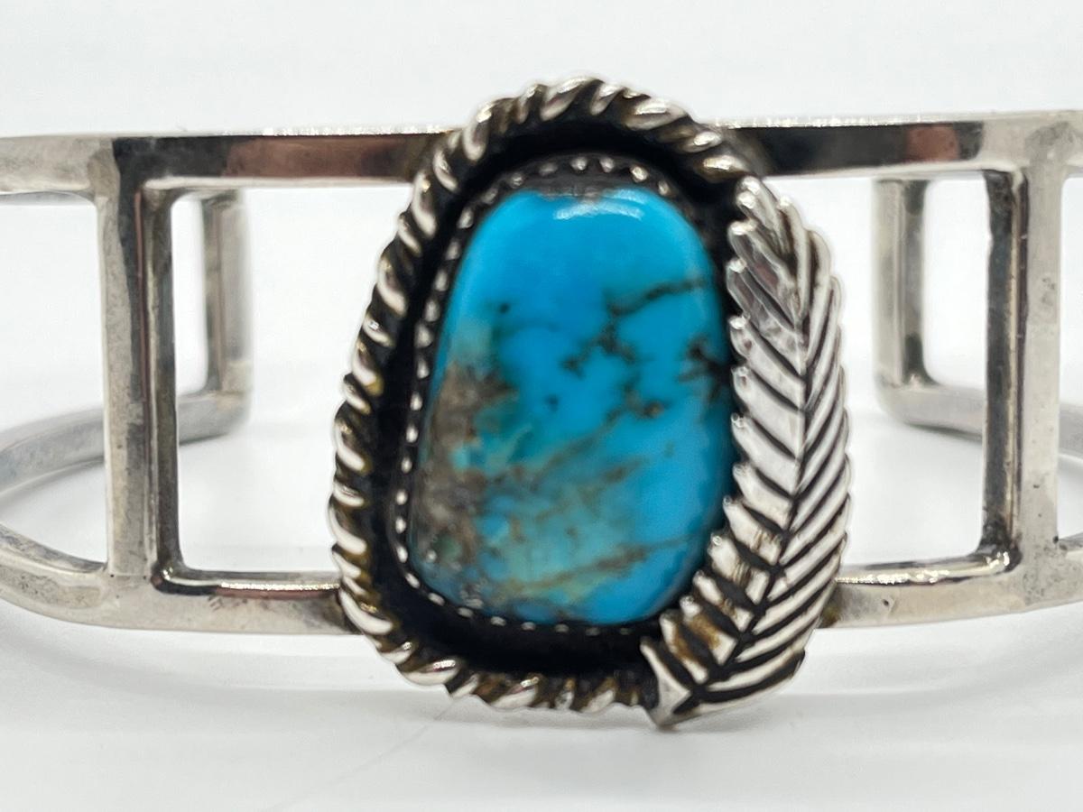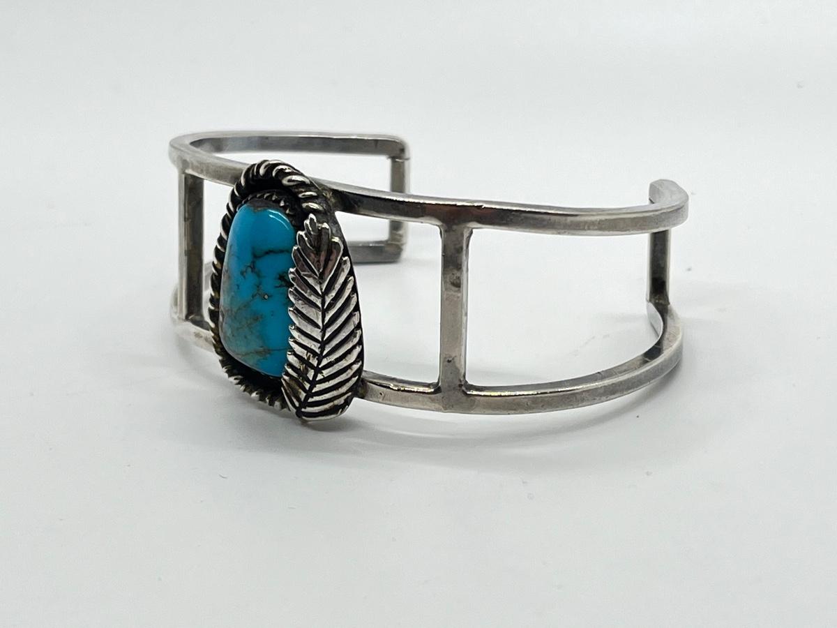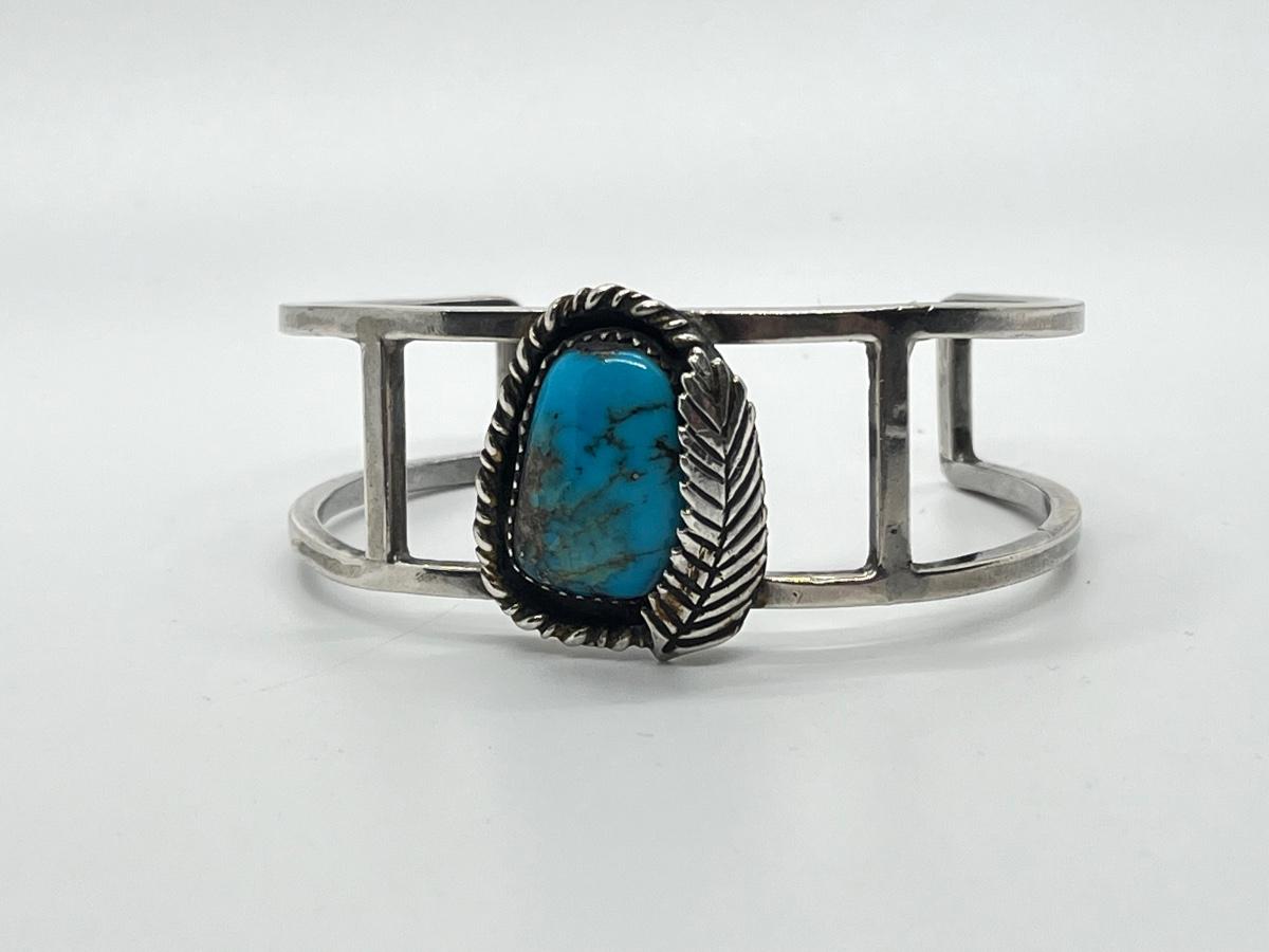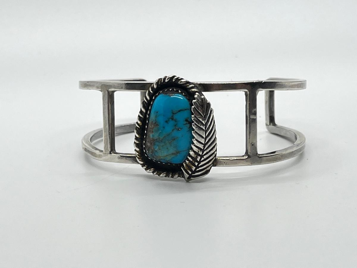 LOT 30: Handcrafted Native American Turquoise & Silver Cuff Bracelet