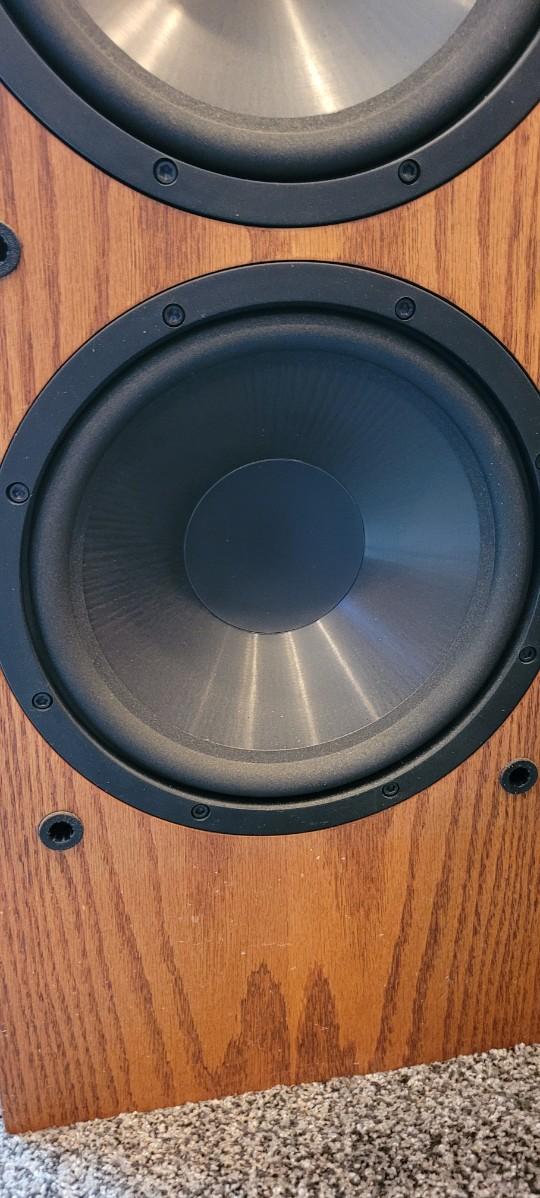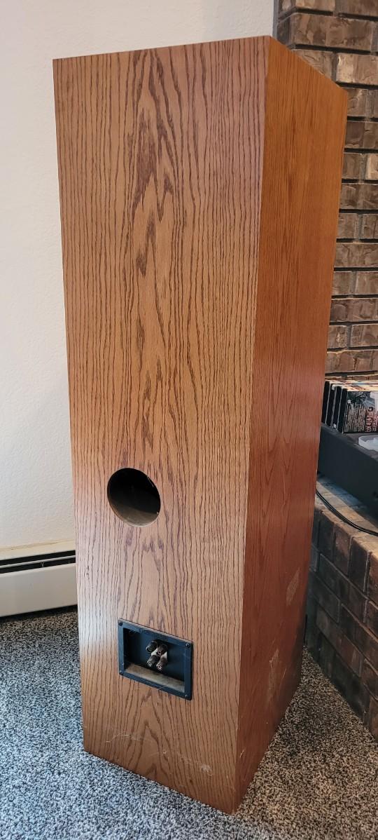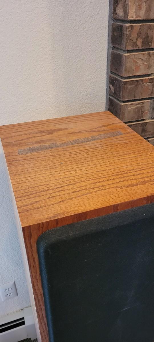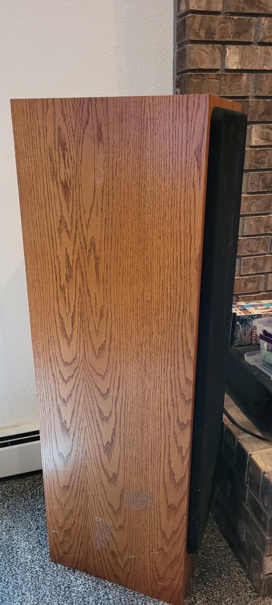 Both monitors appear to be in good shape with no major signs of damage. All speaker cones appear intact.☆☆☆ it appears something fell on the backcorner of the speaker chipping some of the wood. The cabinets are wood not veneer. The damage has a great chance of being sanded out. It does not appear to be water damage. The ding is on back left corner and hard to notice.