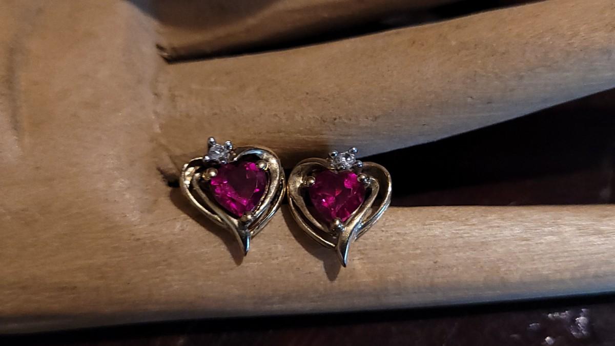 Lot 30: Gold Plated Sterling & Ruby Heart Stud Earrings