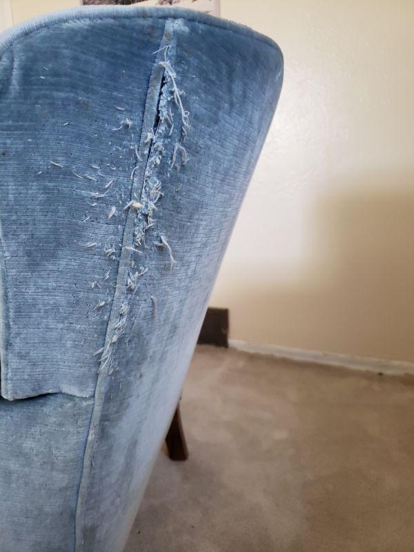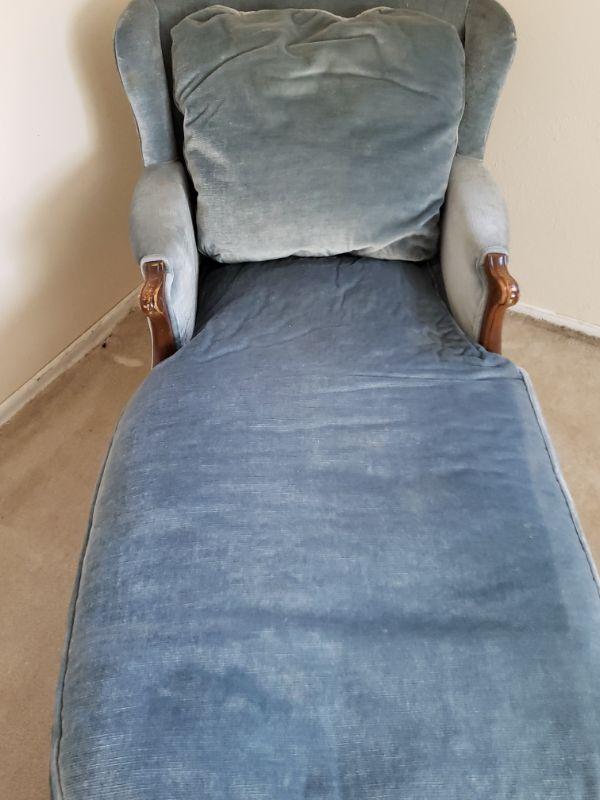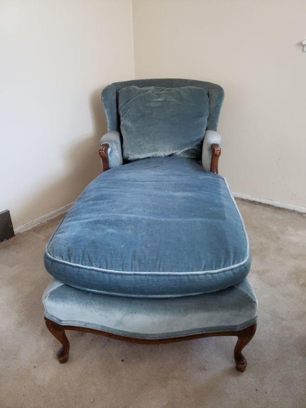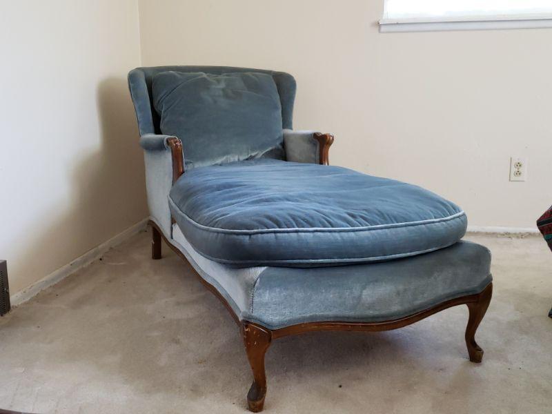 Lot 30: Antique Down Filled Blue Chaise Lounge Chair