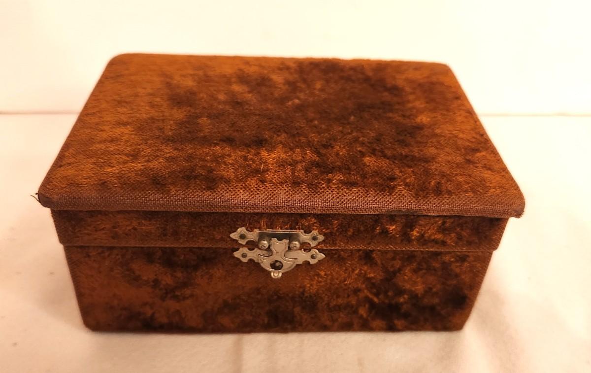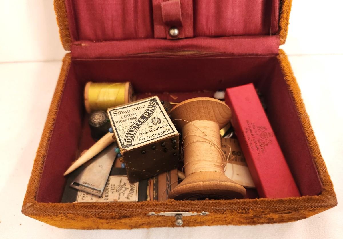 Lot #30 Antique Velveteen Sewing Box w/Notions