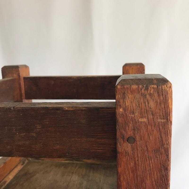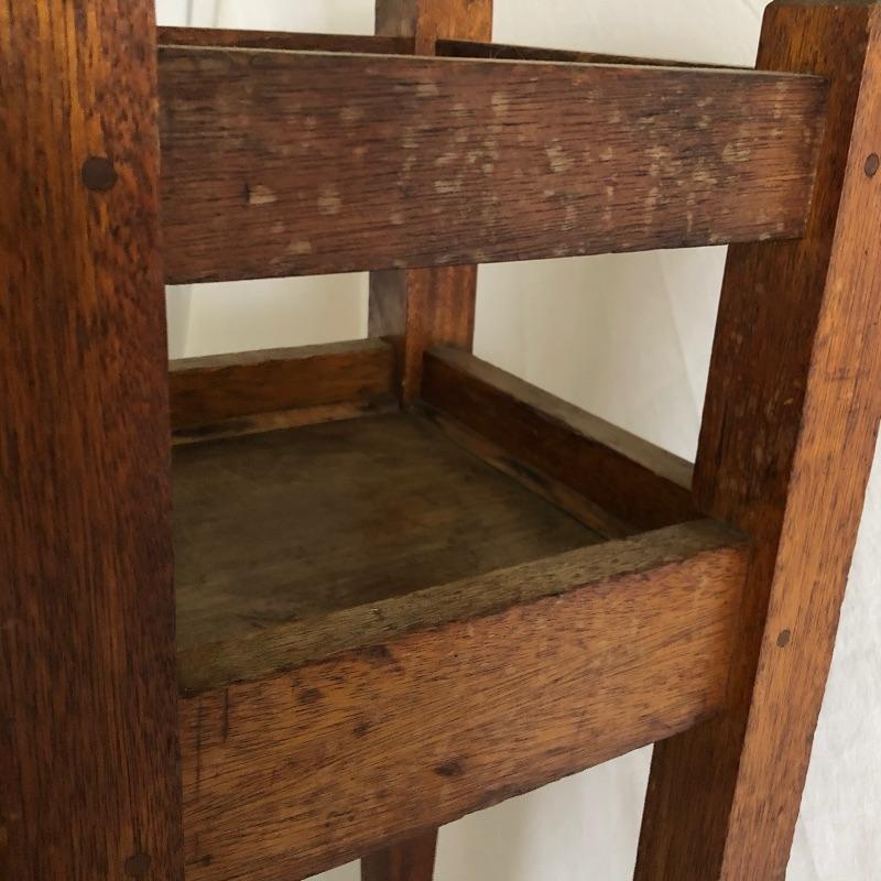 Arts & Crafts wooden plant stand. Place a large fern or fun plants in this lovely piece. Has minor blemishes -see photos. Nice and sturdy.
