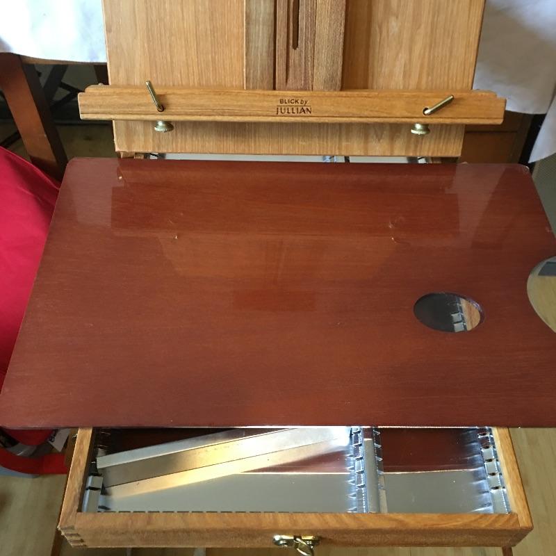 Blick Jillian portable wooden aeasel with carrying case. A great way to go anywhere you desire for the perfect spot for painting.
