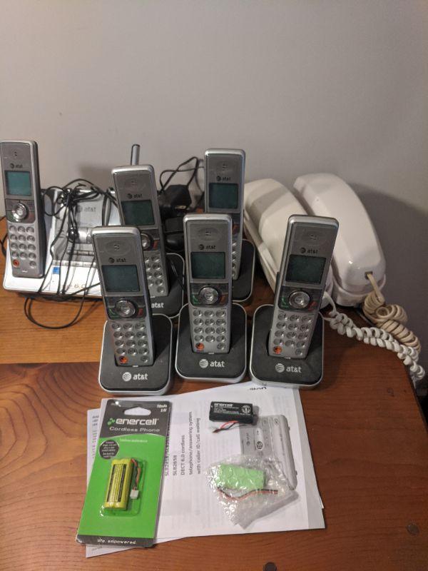 This lot includes five cordless landline phones and two phones with cords. It might feel like old school, but you could have a phone party! See photos for more details.