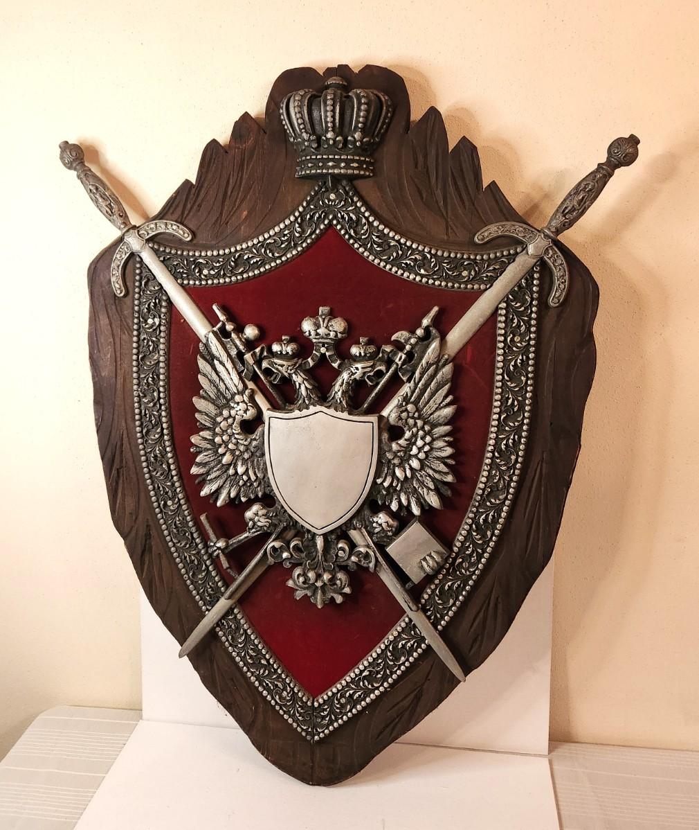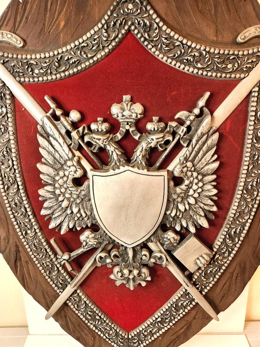 Large (37" tall, 29" across at widest point) Double Eagle Wall Crest - 1960s/70's. Made of metal/wood/velvet. Good condition.