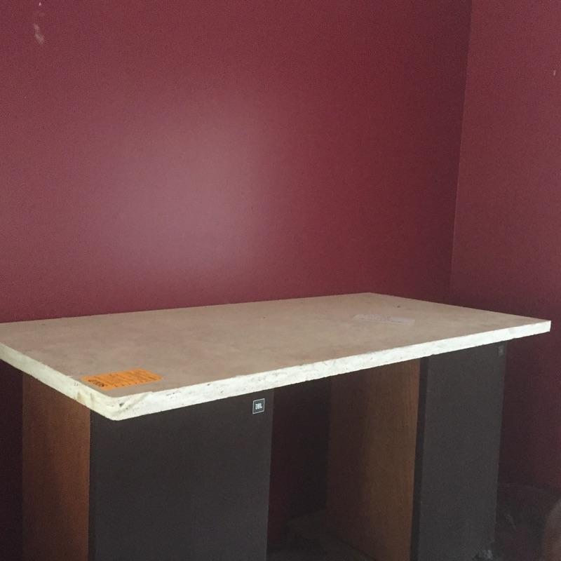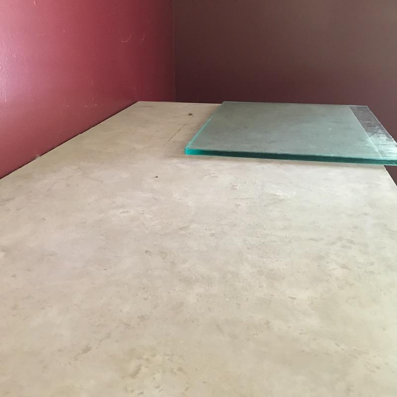 This two item lot includes a large Granite slab that is a light mottled creamy color. Also includes a smaller piece of thick glass.