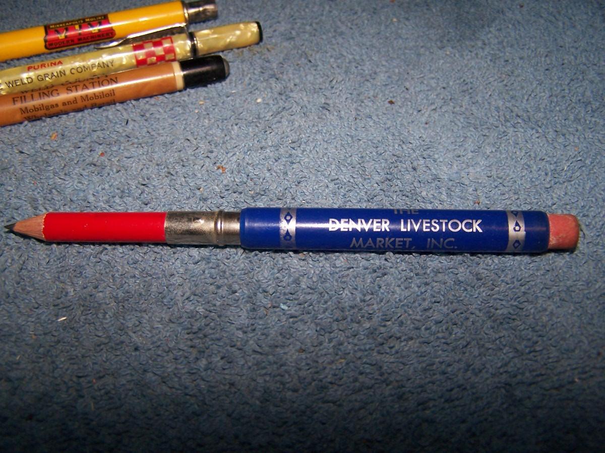THESE ARE GREAT VINTAGE COLORADO ADVERTISING PENCILS!!! YELLOW IS MISSING TOP... LIGHT WEAR...