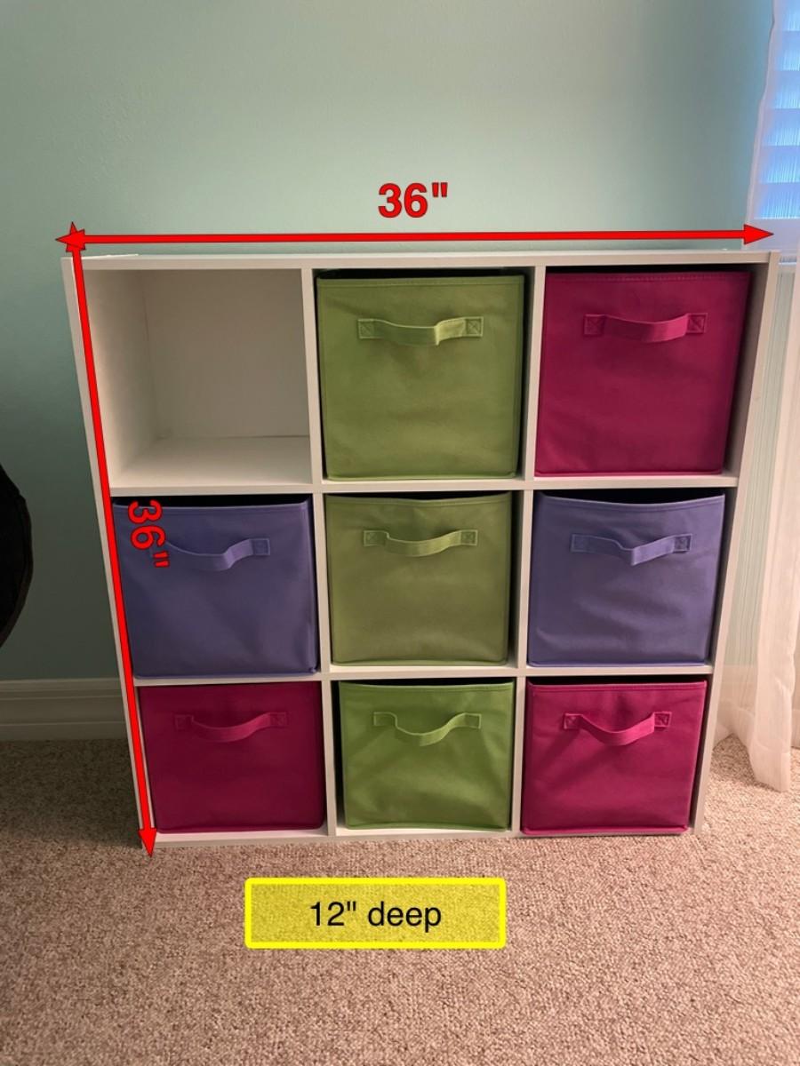 Eight Fabric drawers included. 36" X 36" X 12"