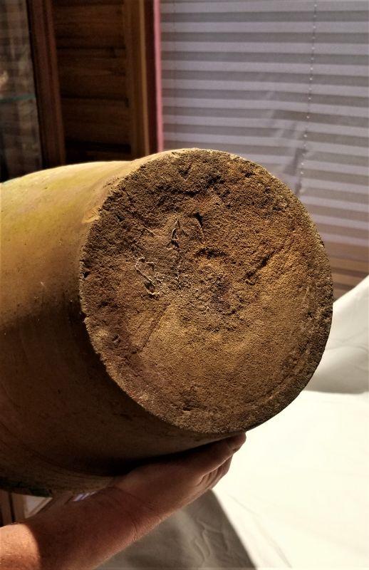 Has a great look indoors or out. Stands 24.5" tall, opening is 14.5 inches wide. Minor chips at base. VERY heavy.