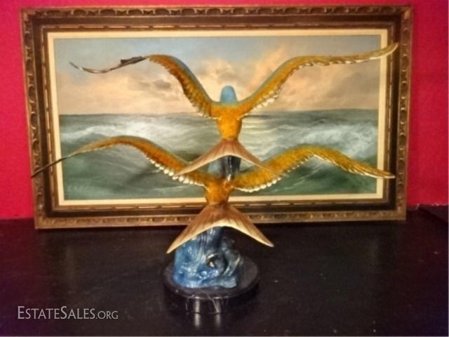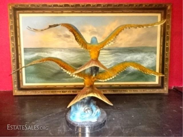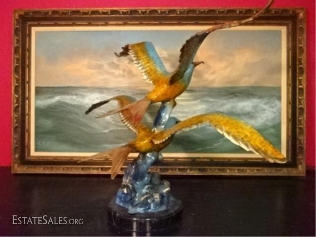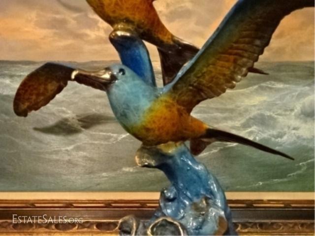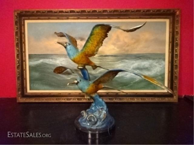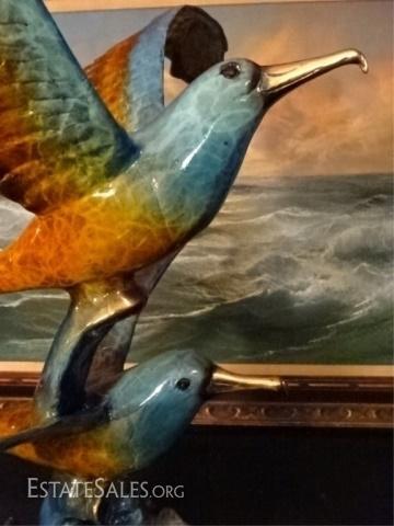 LOT 30: LARGE PATINATED BRONZE SEAGULL SCULPTURE, 2 SEAGULLS ON MARBLE BASE, GOLD GILT ACCENTS, EXCELLENT NEW CONDITION, 34"H X 26"W, SKU250.11 H560