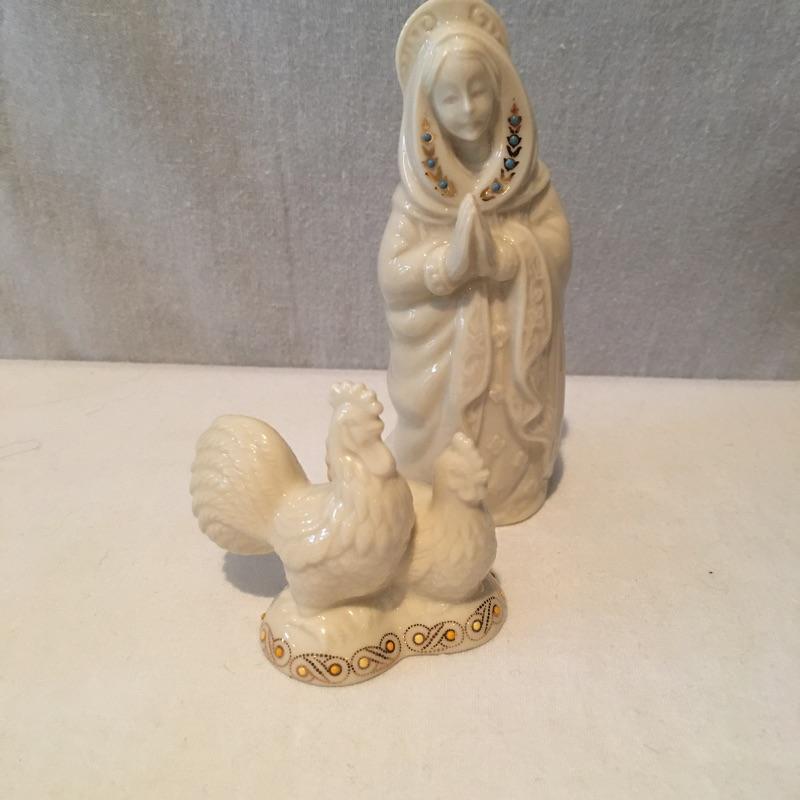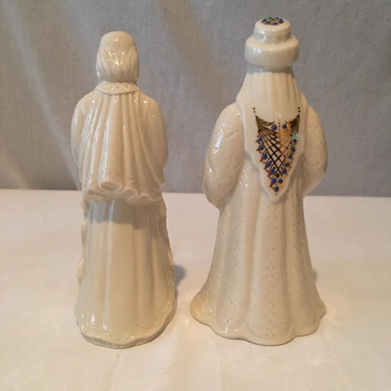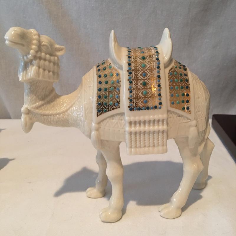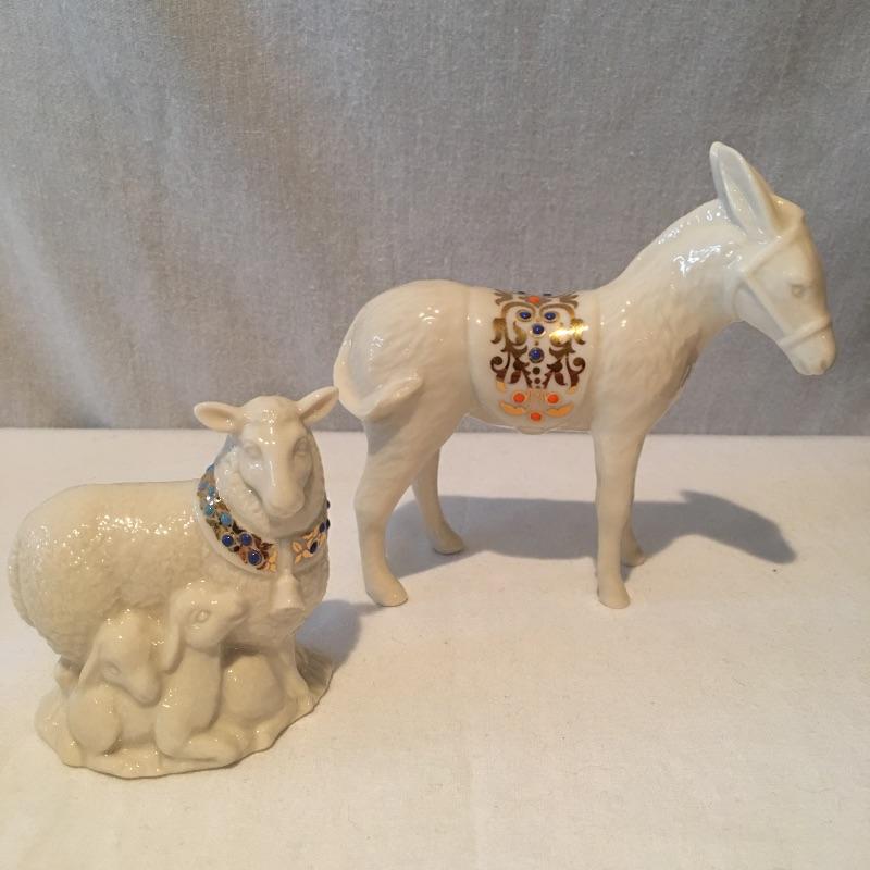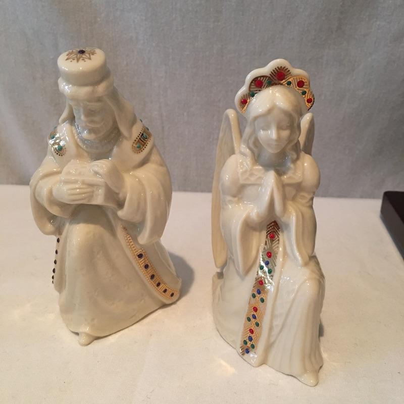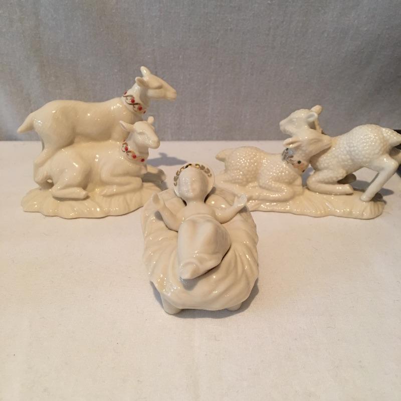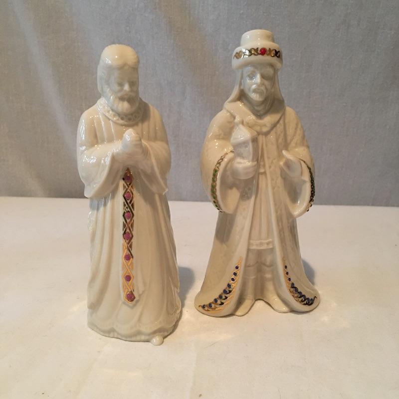 All white Lenox Nativity scene includes twenty one figurines including wise men, Camels, sheep, Shepard’s, cows, angel, baby Jesus, with a wooden manger and more. This is a nice set from a classic manufacturer. Gorgeous pieces with no visible cracks or breaks.